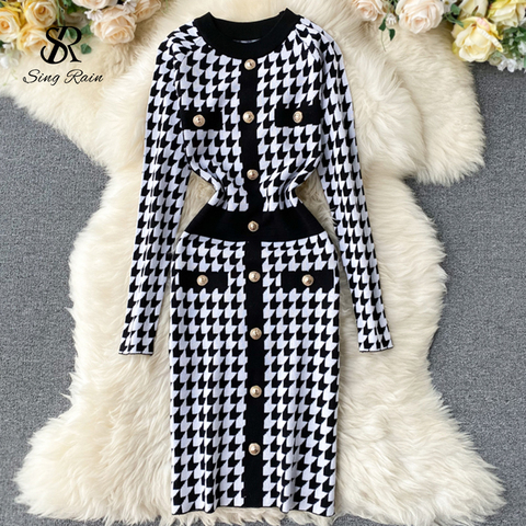 Singray-Robe à carreaux, pied de poule tricoté pour femmes, style rétro tricoté, pull-over, tenue de travail Streetwear, moulante, à la mode, automne hiver