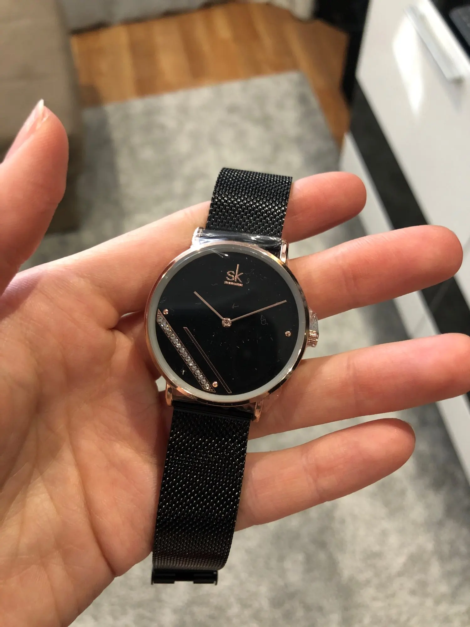 Livraison en 7 jours en France. Bravo. Emballage parfait. Jolie montre, un vrai bijou. Je suis super contente. Un petit bémol, le fermoir n'est pas très sur, il s'ouvre souvent, c'est dommage, j'ai peur que la montre se casse en tombant, cela serait dommage je l'adore.