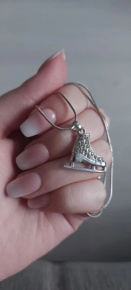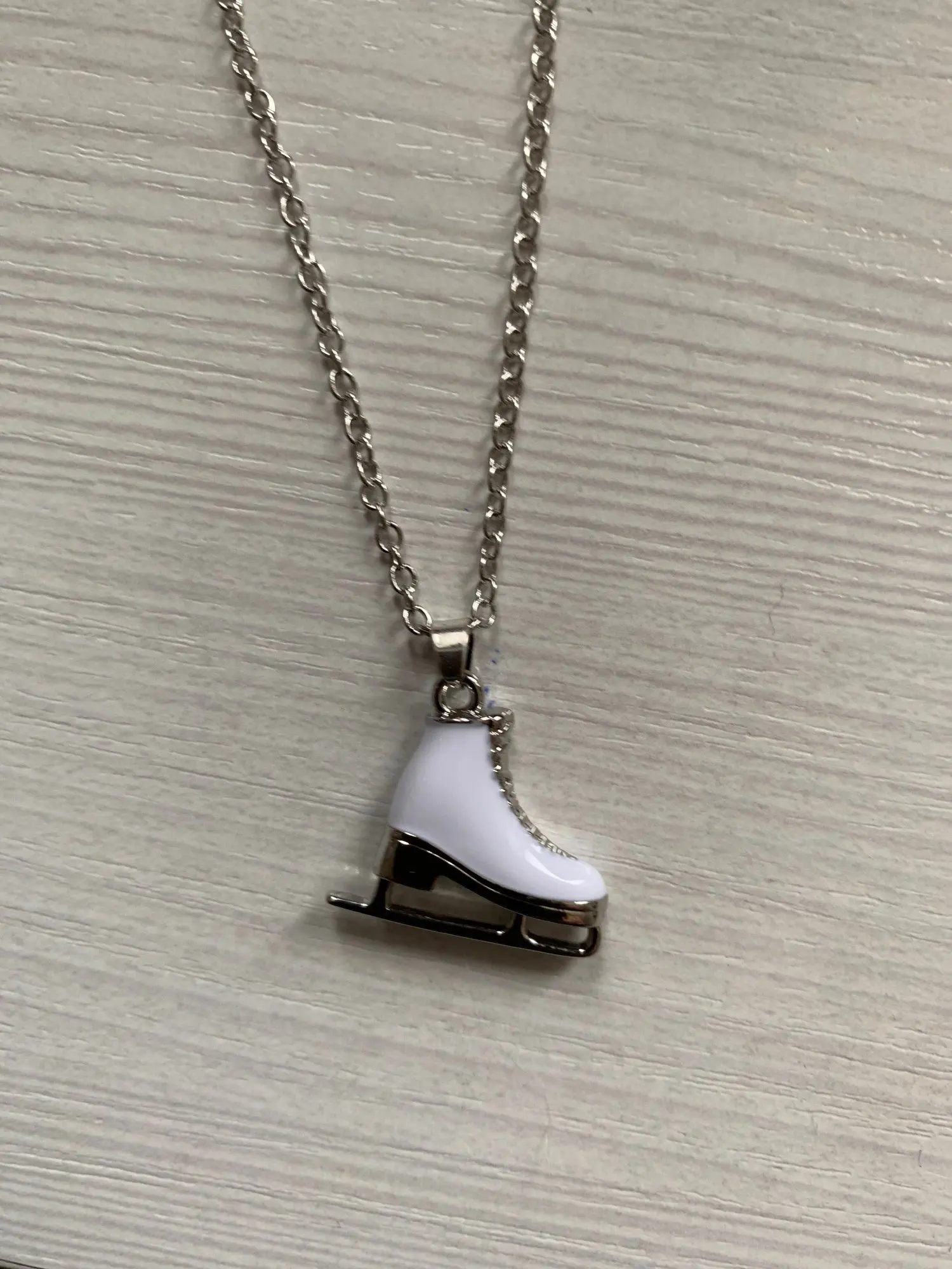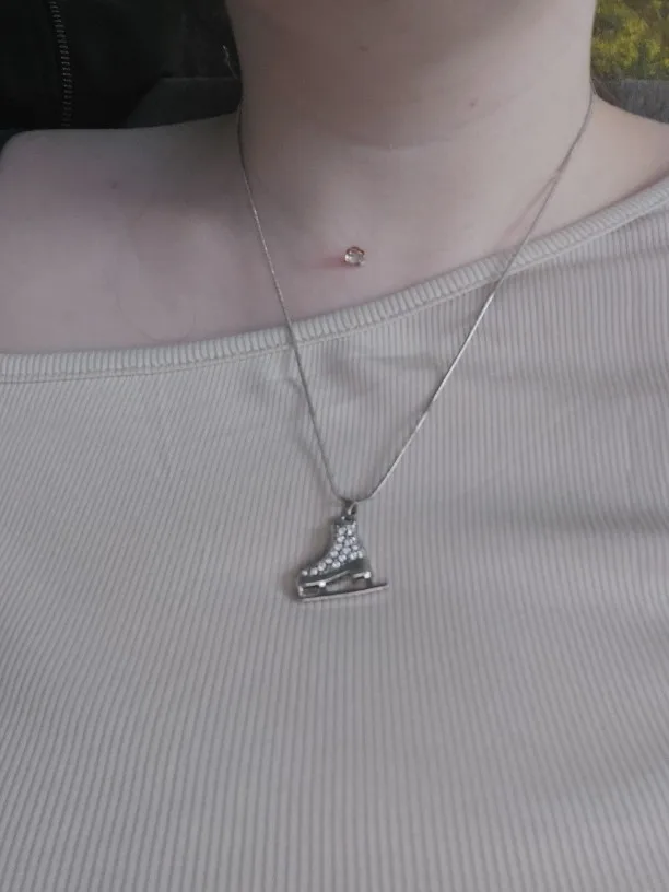 Skyrim-collier de Skate 3D en cristal avec pendentif de patin à glace, Long, couleur argent, bijoux pour adolescentes, cadeau pour femmes