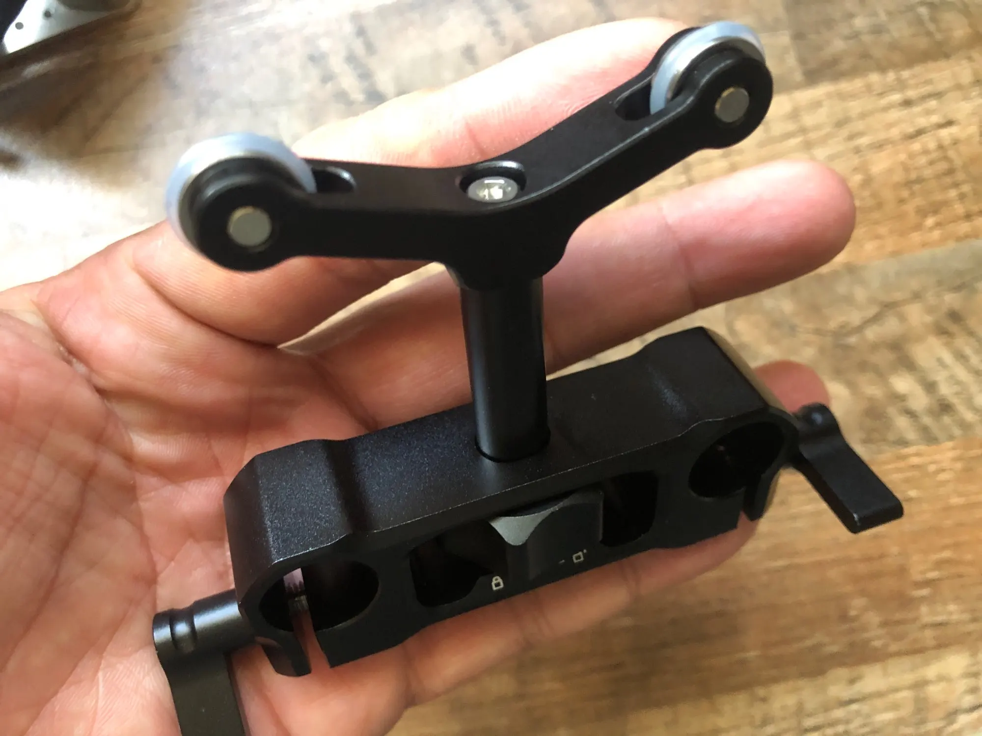 Universal 15mm LWS Rod Mount lens support.