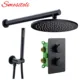 Smesiteli robinet mitigeur de bain de Style rond noir mat, inverseur à 3 voies, vanne thermostatique en laiton 8 ''-16'', ensemble de robinets de salle de bains