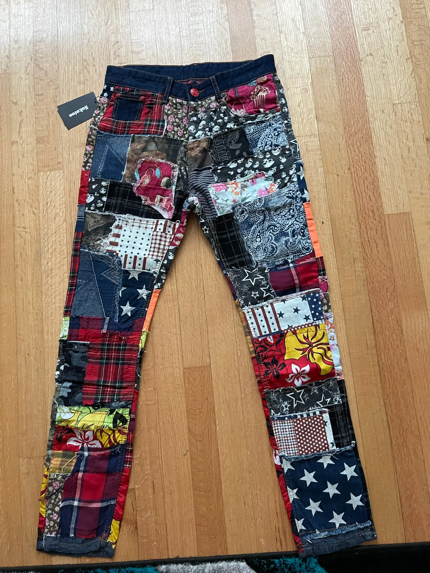 Sokotoo hommes patchwork épissé déchiré denim jeans homme mode mince couleur patch boutons mouche pantalon droit livraison gratuite