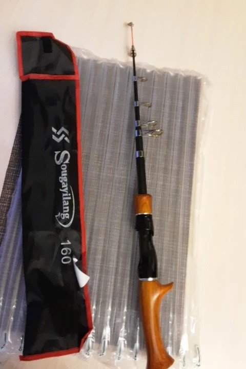 Sougayilang – canne à pêche Spinning/Casting télescopique de 1.6M, accessoire portable en Fiber de carbone avec poignée en liège, idéal pour voyager