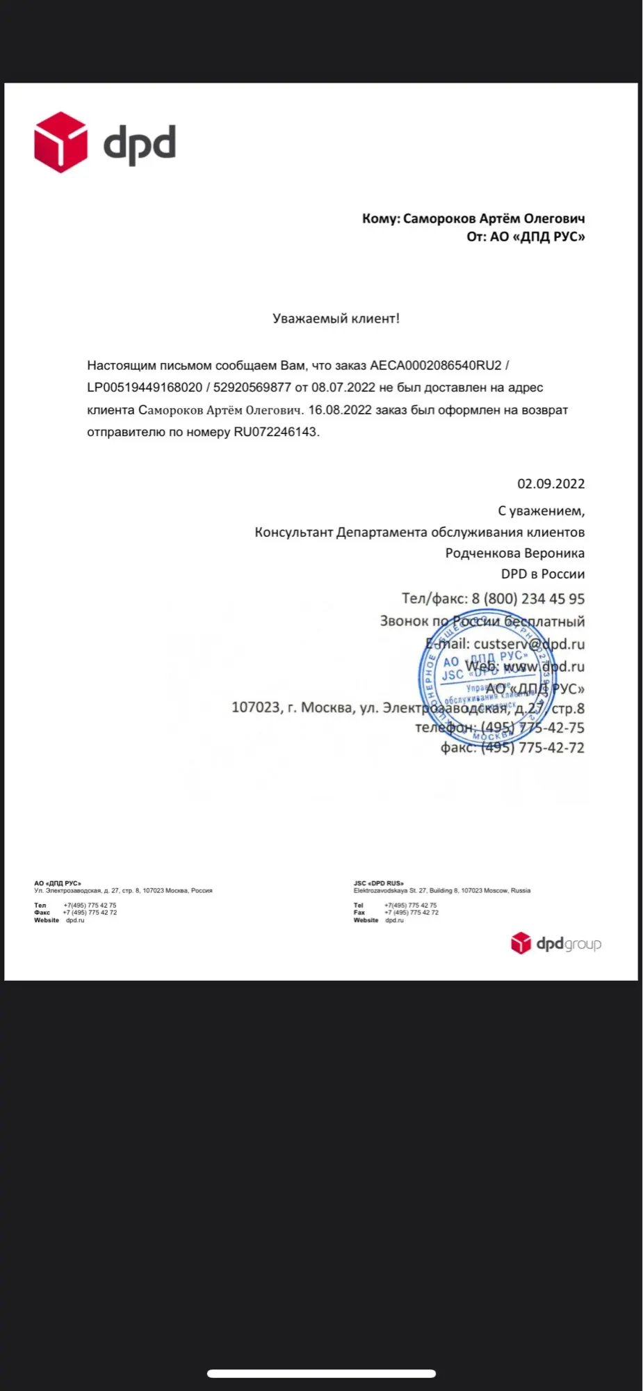 Impossibilité de renvoyer le colis qui m'a été envoyé après annulation commande.