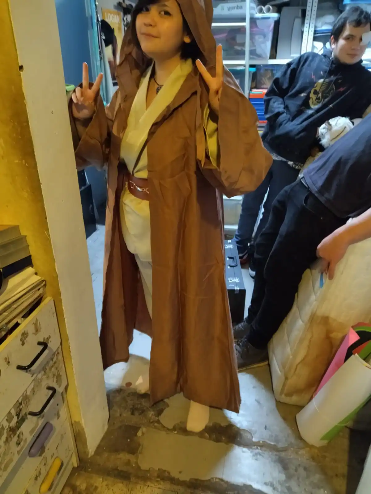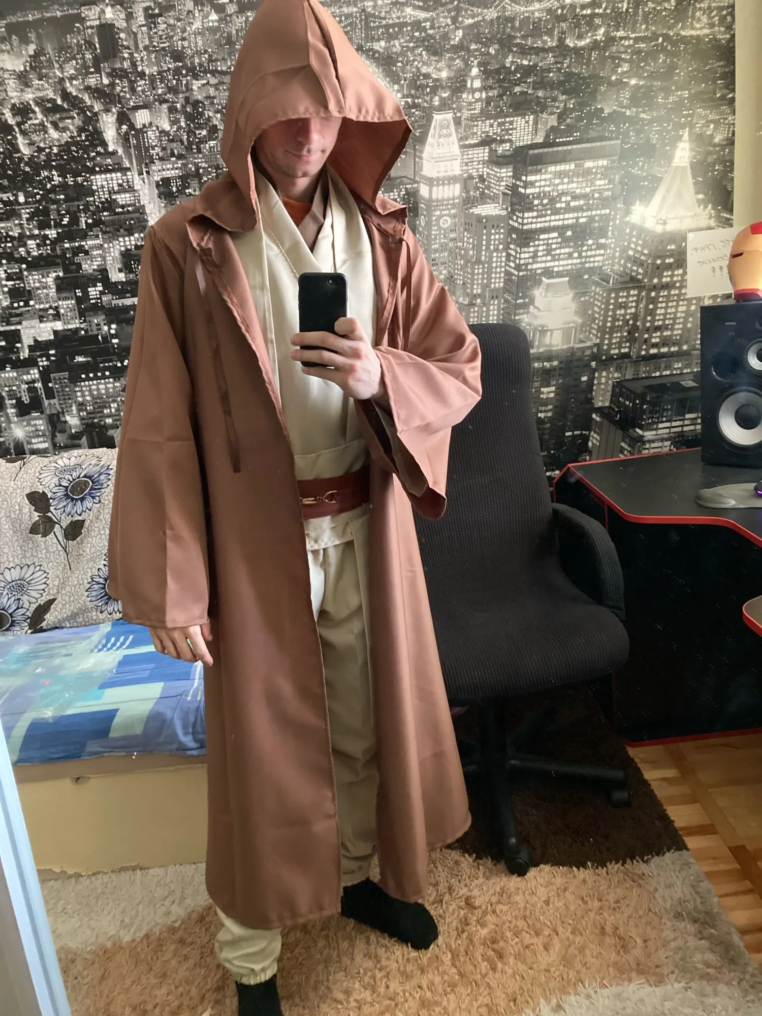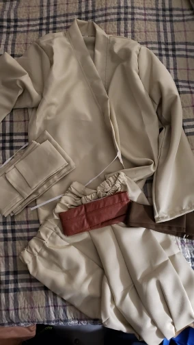 Bon rapport qualité prix, arrivé pile poile dans les délais, je suis très agréablement surprise. Bon, je l'ai pris un peu grand, en L au lieu de M, mais je ferais des retouches à la machine pour qu'il m'aille mieux. Un conseil donc: prenez votre taille d'habitude, il vous ira très bien. J'ai hâte de retrouver mon sabre laser pour un total look Obi-Wan ! Je repasserai commande avec ces vendeurs, c'est sûr !