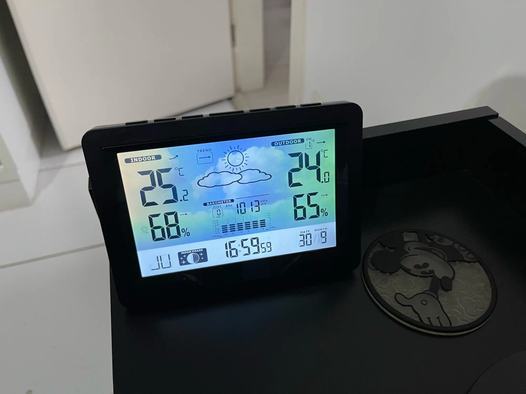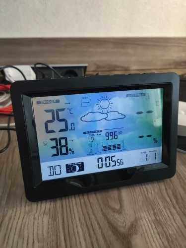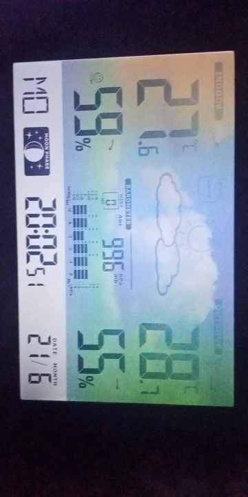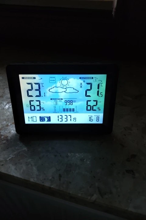 Time, temperature, weather forecast, alarm clock, pressure, moon phase