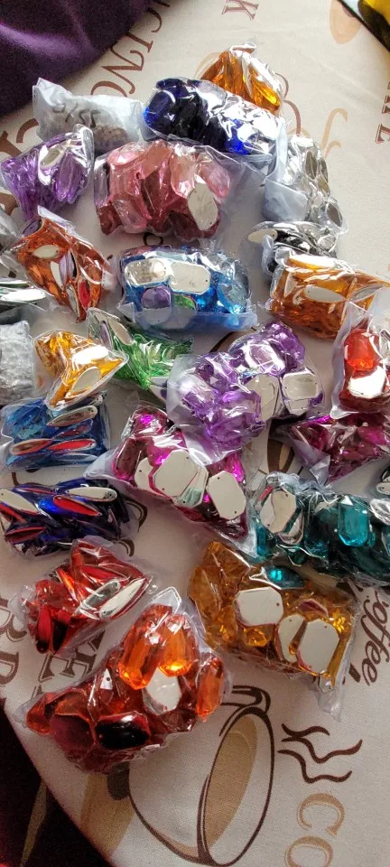 Strass à coudre avec deux trous, accessoires pour bricolage/vêtements, dossier plat en acrylique de haute qualité 8x21mm, 7x28mm, drs, 50pcs