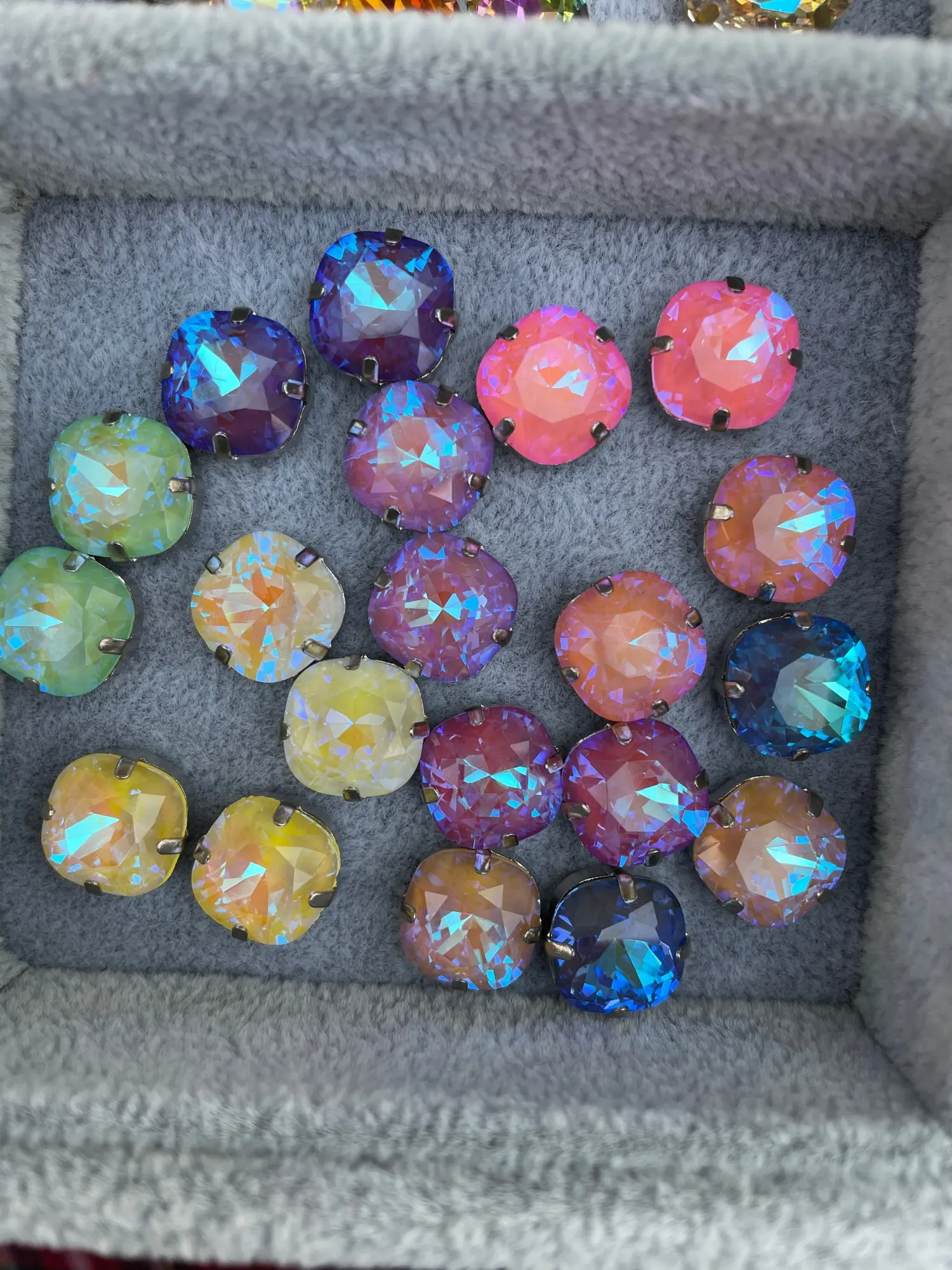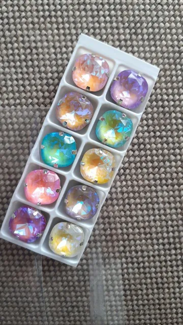 Strass à dos plat pour vêtements, forme carrée Mocha 12mm, verre fluorescent en cristal, couture, base creuse en argent avec griffe