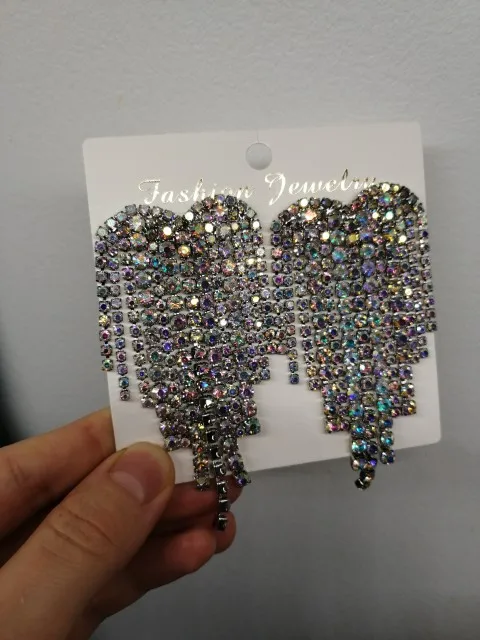 Strass de luxe coeur soirée boucles d'oreilles pour les femmes à la mode brillant cristal grande déclaration boucles d'oreilles bijoux de fête de mariage
