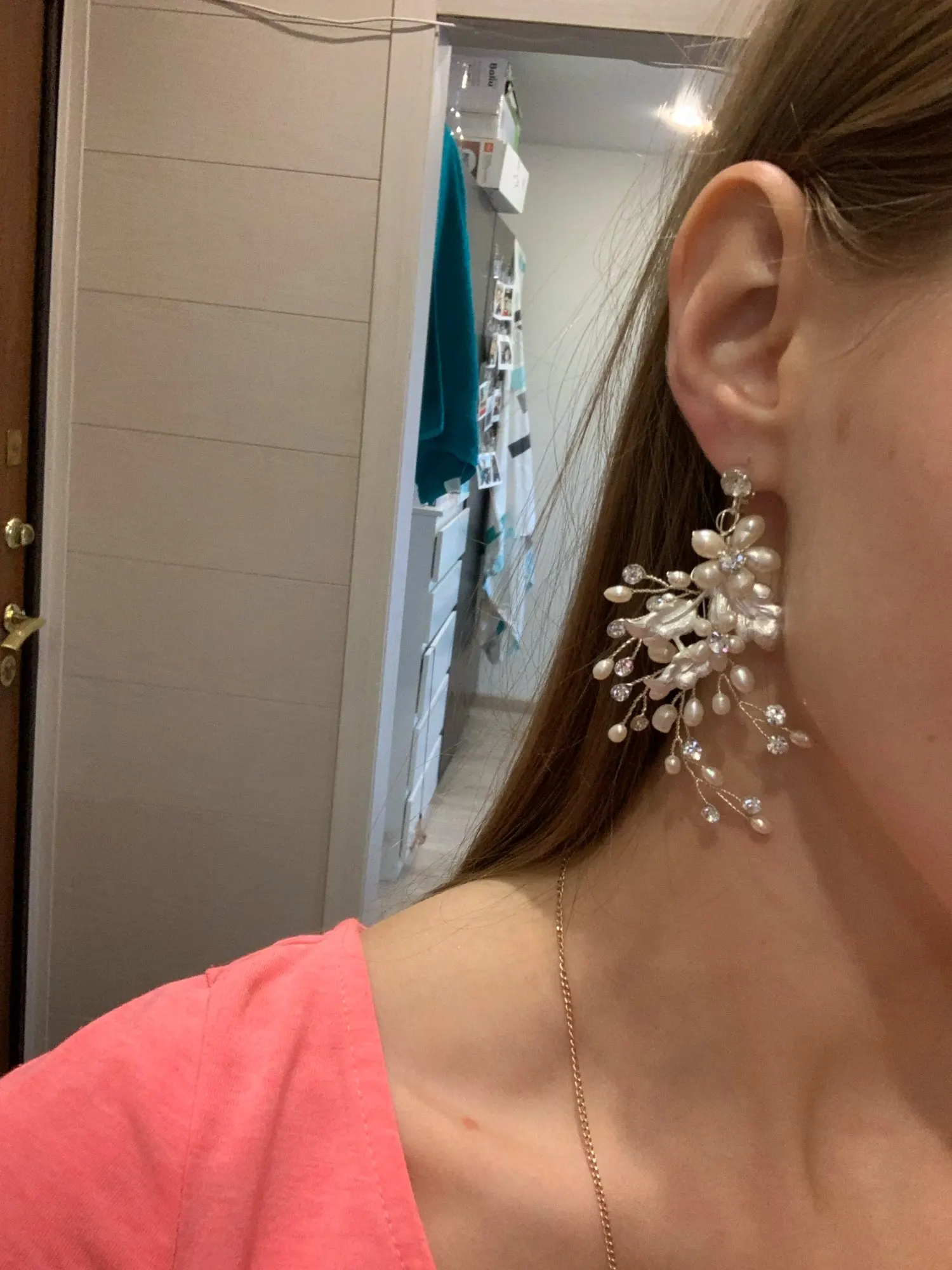 Strass fait à la main strass cristaux perles d'eau douce boucle d'oreille de mariage lustre de mariée boucle d'oreille mode femmes bijoux