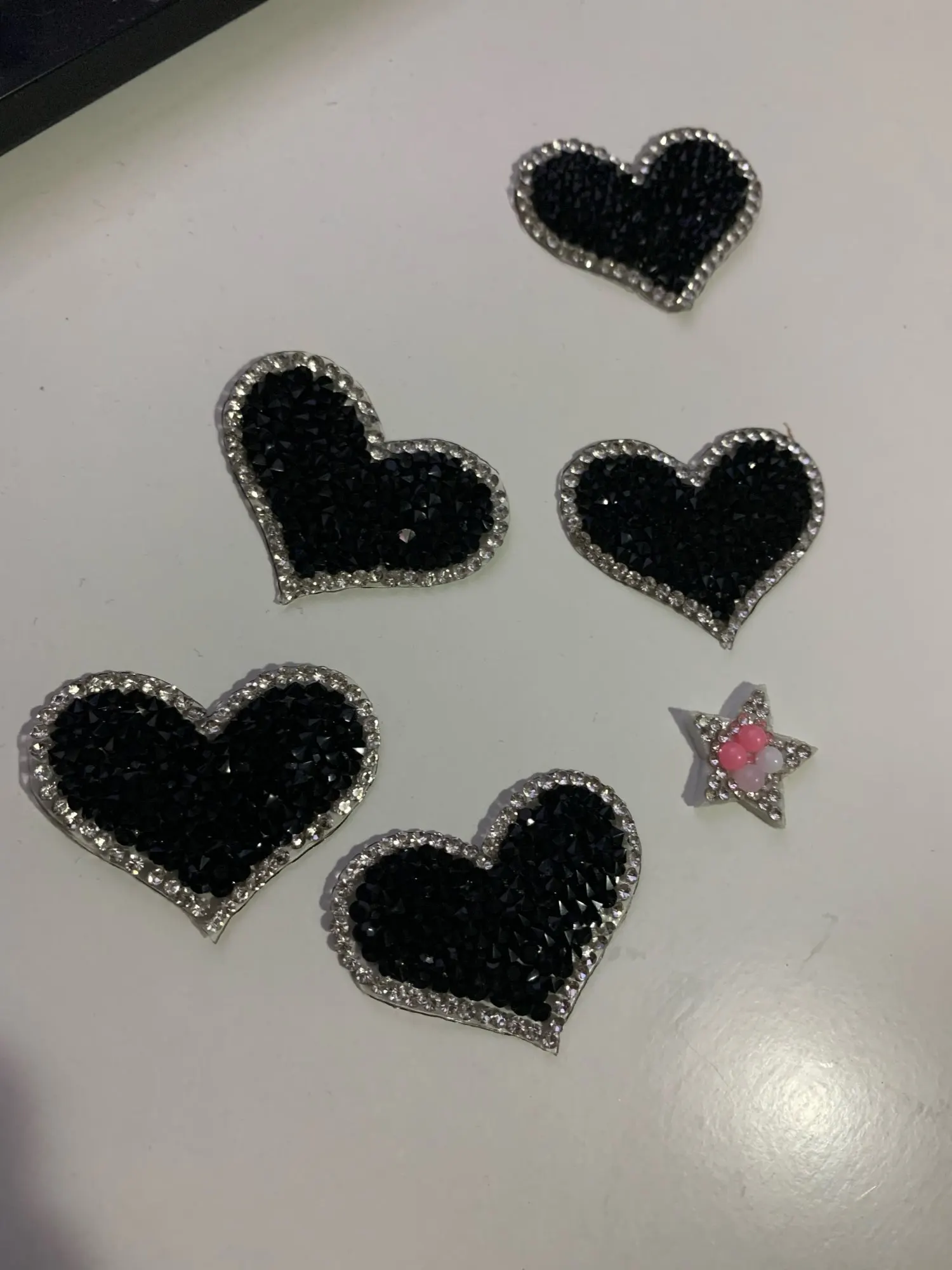 Strass noirs cœur amour | Lot de 5, Thermocollants, perçage, Parches Ropa, fer sur les patchs, Transfert