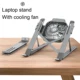 Bien pour le prix mais...La conception aurait pu être plus poussée. Si l’angle de la position est trop prononcée l’ordinateur risque de glisser et de tomber. Les volets (clips) du ventilateur de refroidissement sont 2mm trop large. L’épaisseur du ventilateur de refroidissement empêche le réglage sur les deux derniers crans du support position basse.