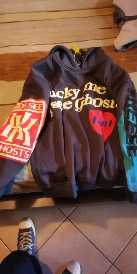 Sweat à capuche LUCKY ME I SEE GHOST pour homme et femme, vêtement avec imprimé en mousse, Kanye West Kid Cudi, 2022