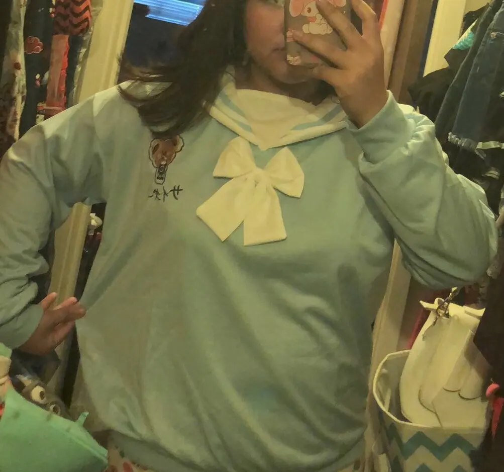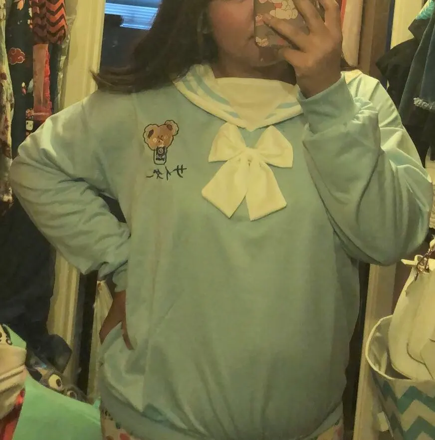 Sweat à capuche pour femmes, Harajuku, mignon, Lolita Kawaii, imprimé ours, Streetwear, col marin, JK, nœud papillon