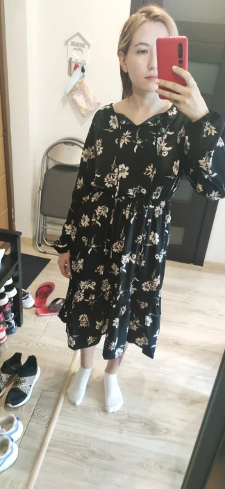 Syiwidii Robe pour Femmes Vintage Imprimé Floral Maxi Décontracté Lanterne Manches Printemps Automne Empire Grande Taille Noir 2022 mode Longue