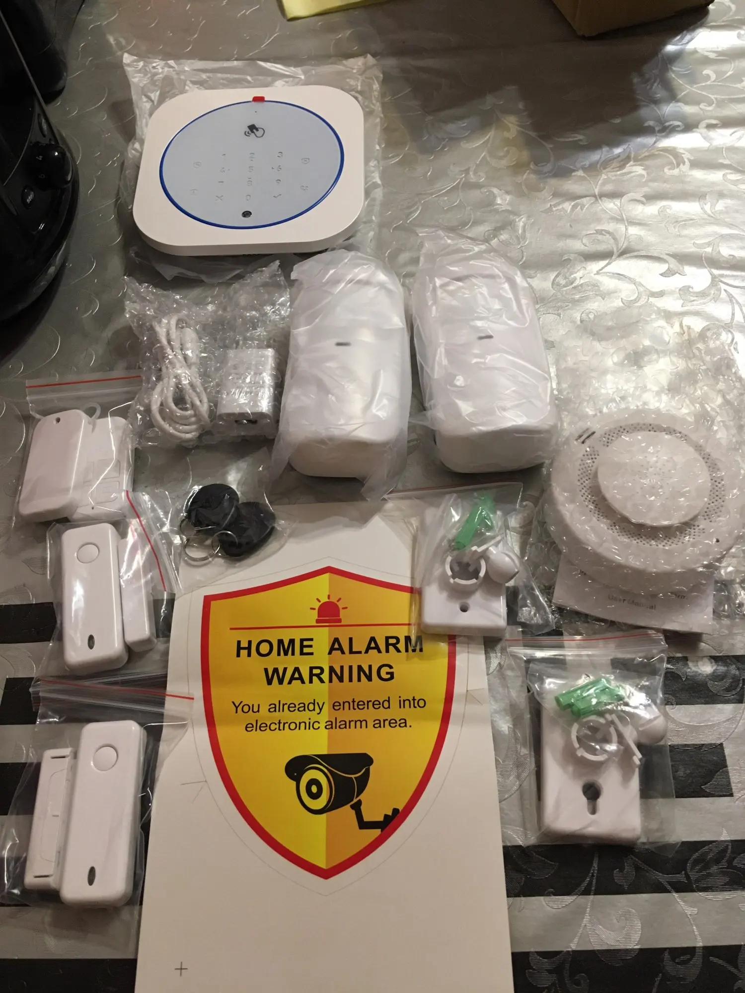 livraison très rapide avant la date prévu, contenu avec notice en 5 langues et complet réf B, déjà paramétré en Français, reste a associé le matériel et associer le paramétrage du téléphone, dommage il avait pas les piles pour le détecteur et contacte de porte a prévoir en option car ici c'est cher, application smartrol V1.0 ne fonctionne pas malgré la 3G ET 4G disponible aucune liaison avec la G4 pour faire le paramétrage (carte sim installé et mot passe crée a chaque paramétré envoyer détecteur s'allume, mes impossible de armée ou désarmé attente réponse ou application doit être améliore.