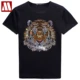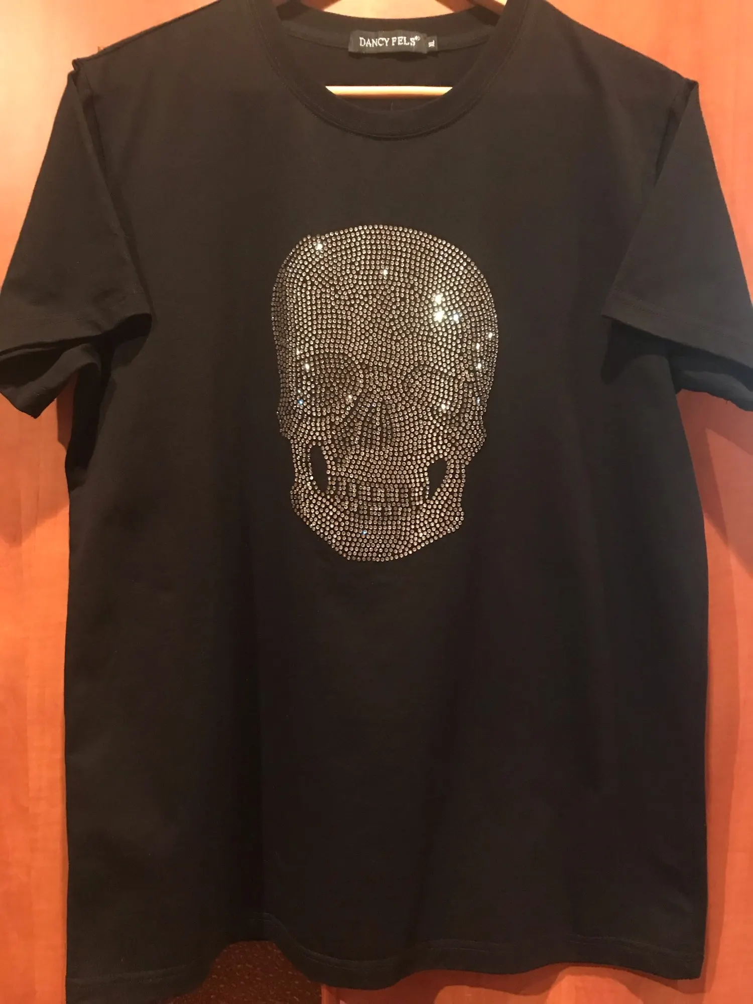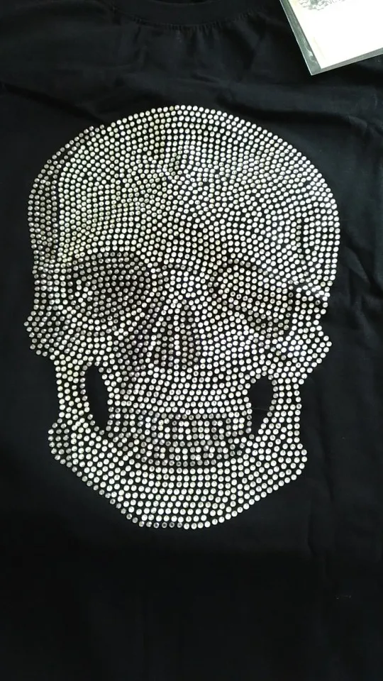 T-Shirt à manches courtes en coton noir pour femmes, avec crâne brillant, avec impression de strass, de haute qualité