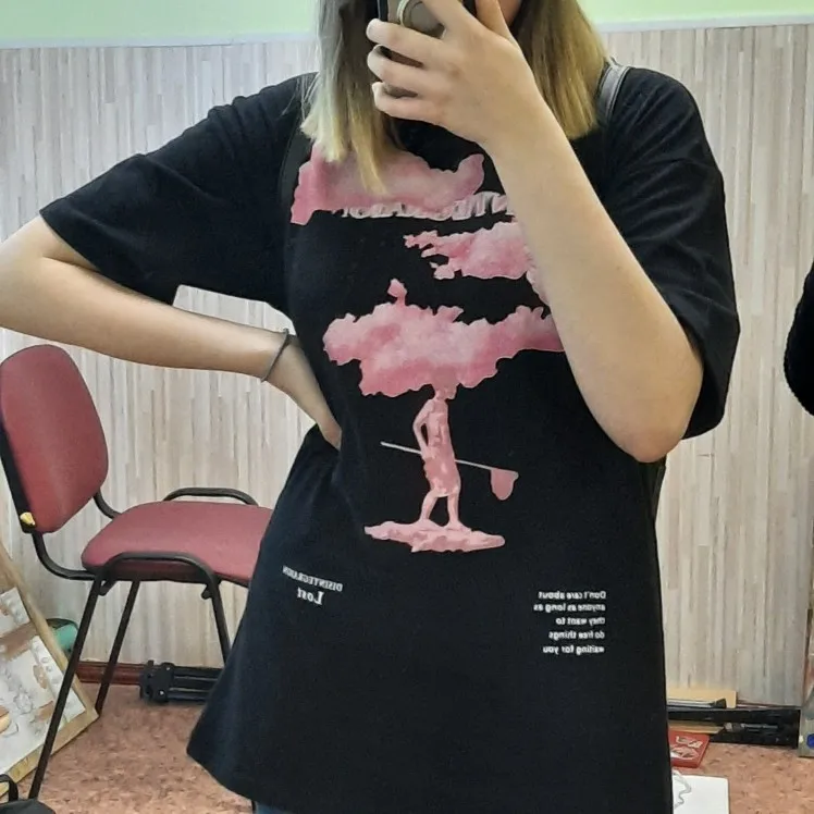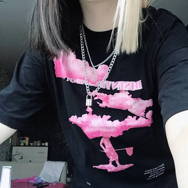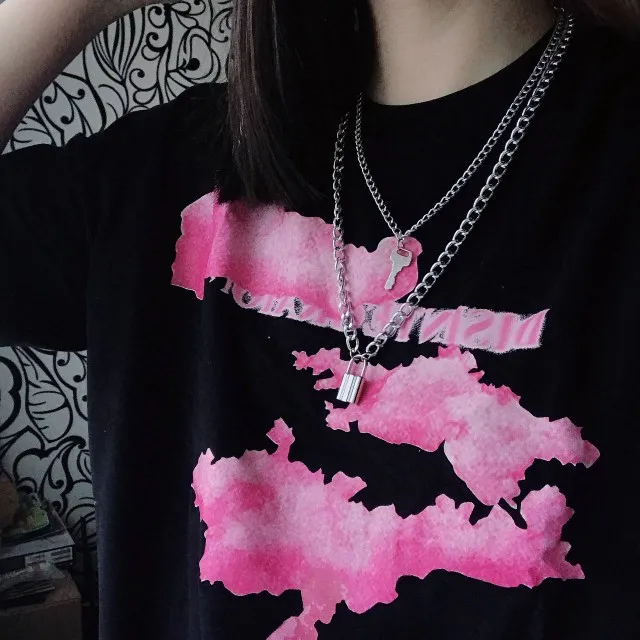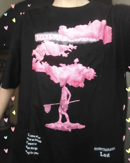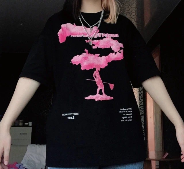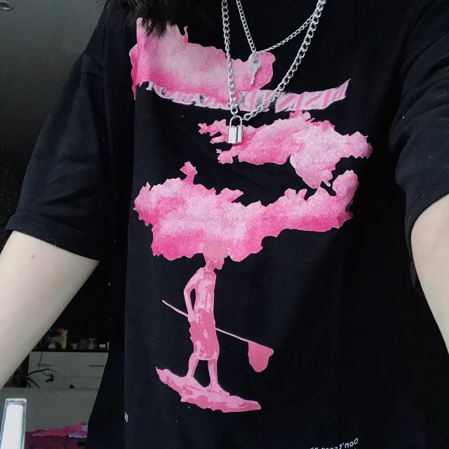 T-shirt à manches courtes, noir avec motif nuage rose, en coton, pour homme, style urbain, hip-hop, harajuku, tendance 2022