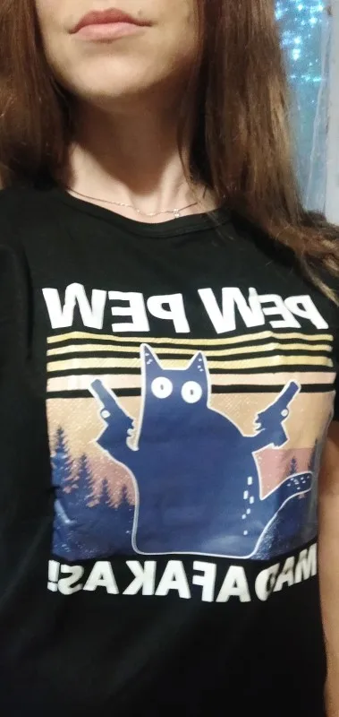 T-Shirt femme humoristique avec chat Pew Pew Pew Madafakas, Gangster avec arme à feu, memes rétro, hauts féminins, années 90, livraison directe