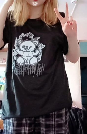 T-shirt Goth Y2K à manches courtes pour femmes, vêtements coréens, Vintage, noir, imprimé graphique de dessin animé