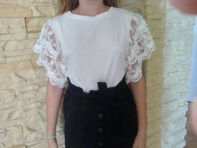 T-Shirt manches courtes à volants pour femmes, élégant, décontracté, solide, col rond, blanc, noir, Patchwork, été, 2022