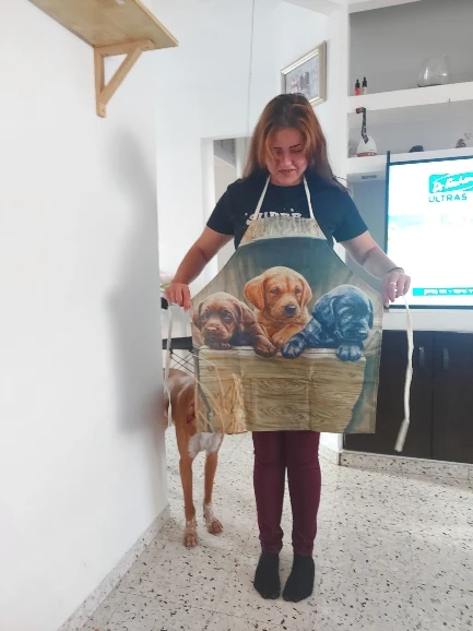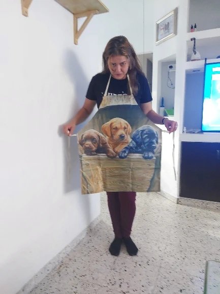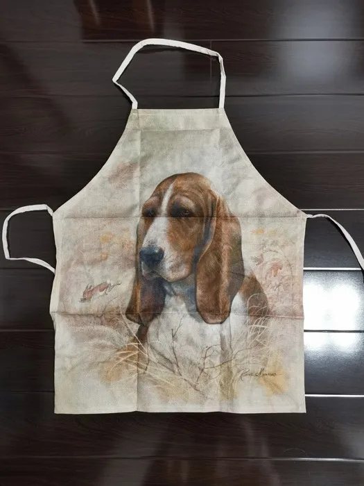 Tabliers de cuisine à thème de chien en lin imprimé, unisexe, pour dîner et fête, bavoir amusant pour nettoyer les taches