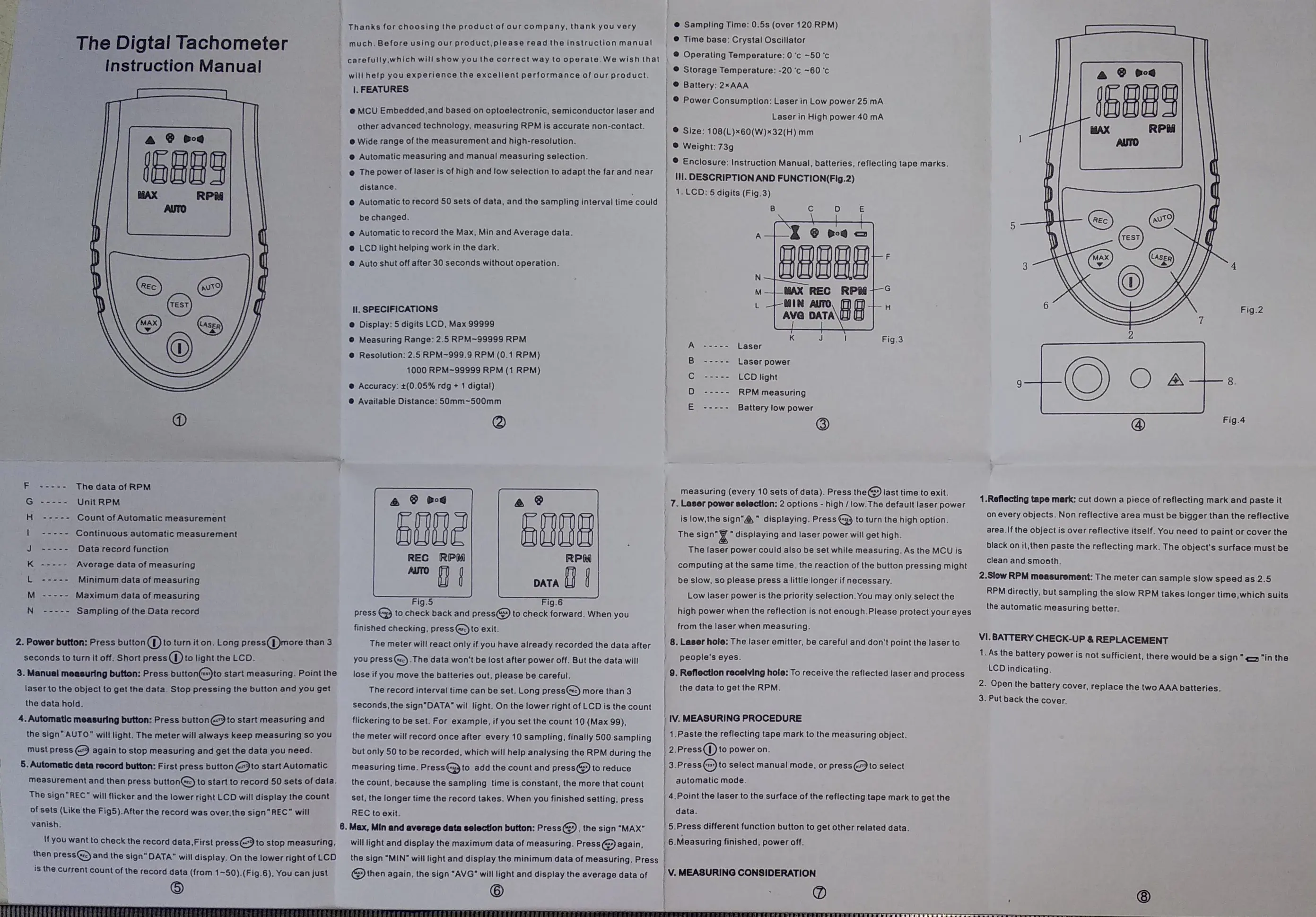 Tachymètre Laser numérique LCD RPM Test petit moteur moteur jauge de vitesse sans contact HS2234 (pas de batterie)