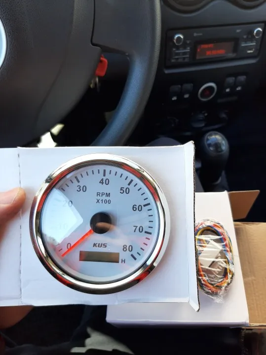 Tachymètre marin automatique KUS 85mm 0-8000RPM 12V 24V avec chronomètre numérique LCD pour voiture, camion et bateau, jauge de Tacho rouge/jaune, rétroéclairage