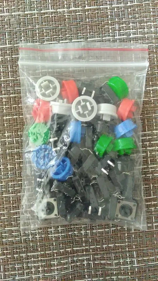 Tactile Bouton-Poussoir Momentané 12*12*7.3 MM Micro Interrupteur Bouton + 5 Couleurs Tact Cap pour DIY Kit