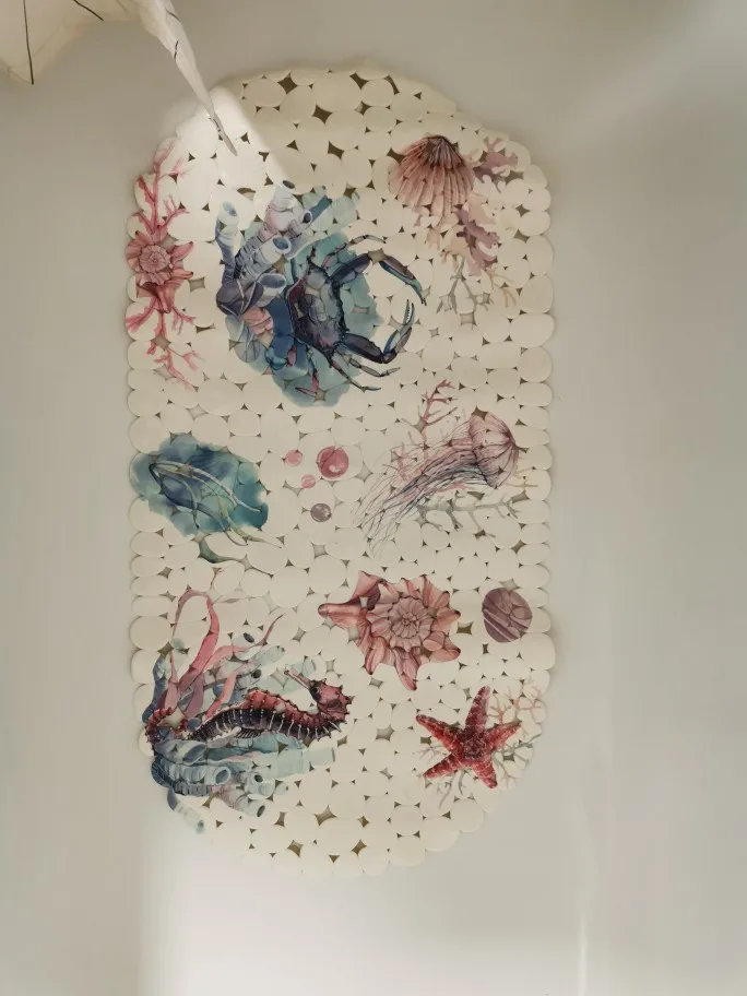 Tapis de baignoire antidérapant en PVC 20 couleurs, avec trous de vidange avec ventouse, tapis de baignoire mignon, pour la salle de bain d'enfants, doux, Massage 69x35cm