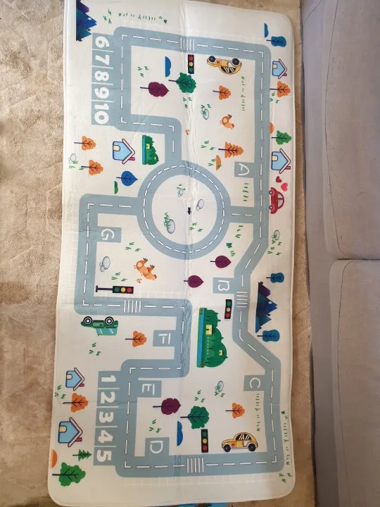 Tapis arrivé très vite, en parfait état. Identique à l'image. Mon fils en est très content