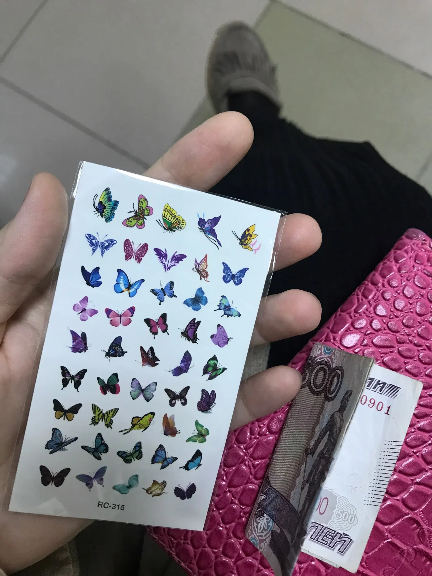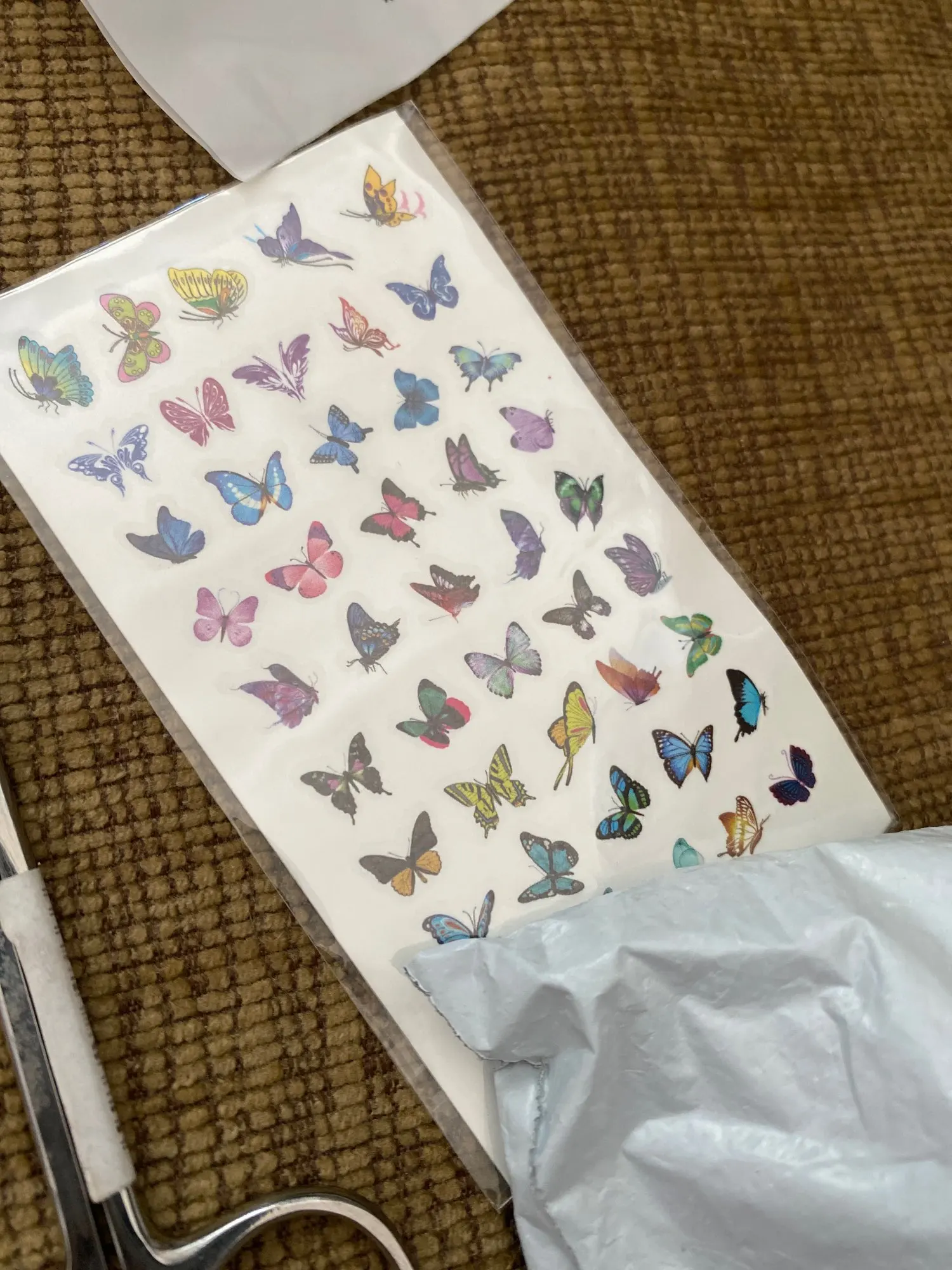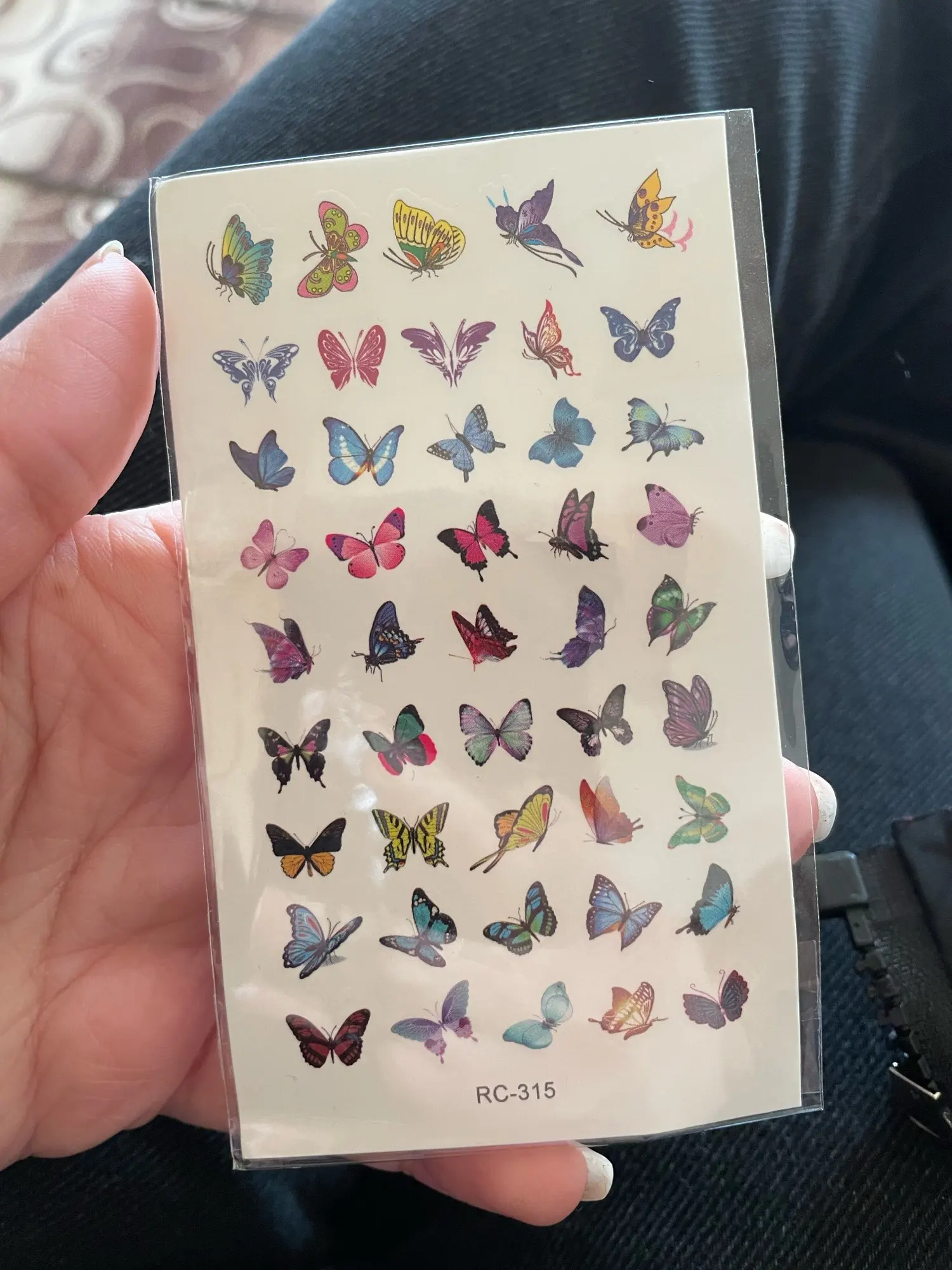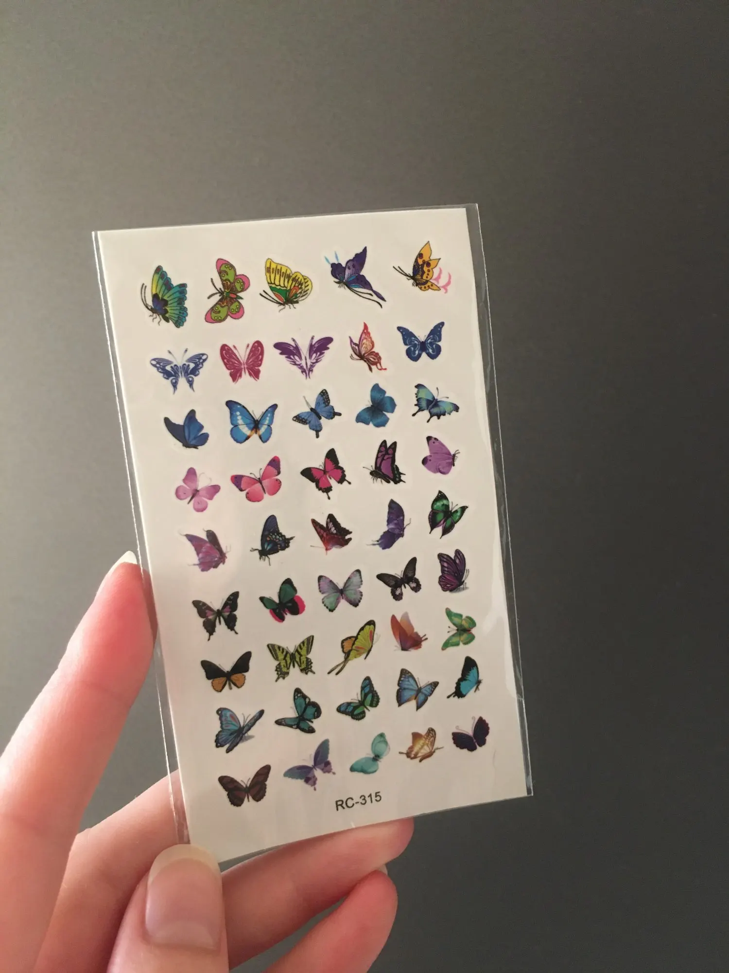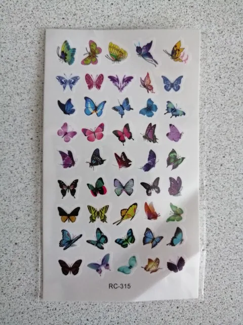 tatouages très fins mais fonctionnels. À appliquer avec un peu d'eau contre la peau et le résultat est presque immédiat. Papillons très petits, ils peuvent servir pour décorer des pages ou autres objets de créations. Impeccable