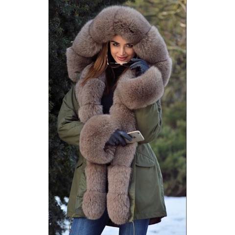 Tatyana femmes réel fourrure Parka manteau renard fourrure col et manchette femmes Parkas épais hiver chaud naturel fourrure veste longue fourrure de renard manteaux