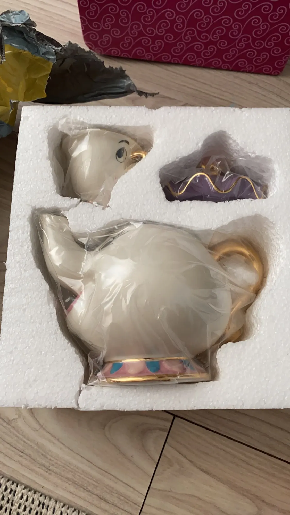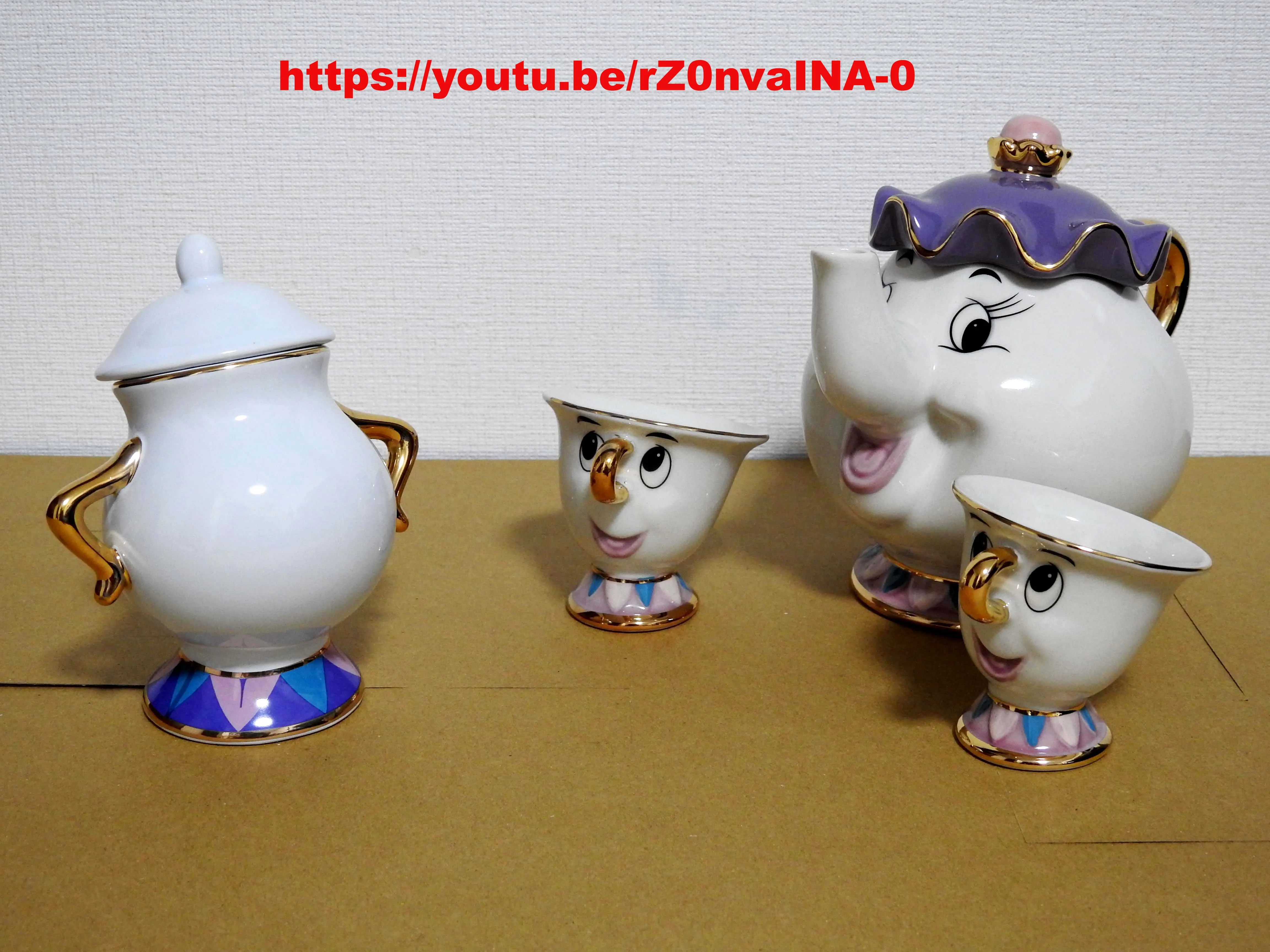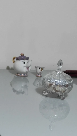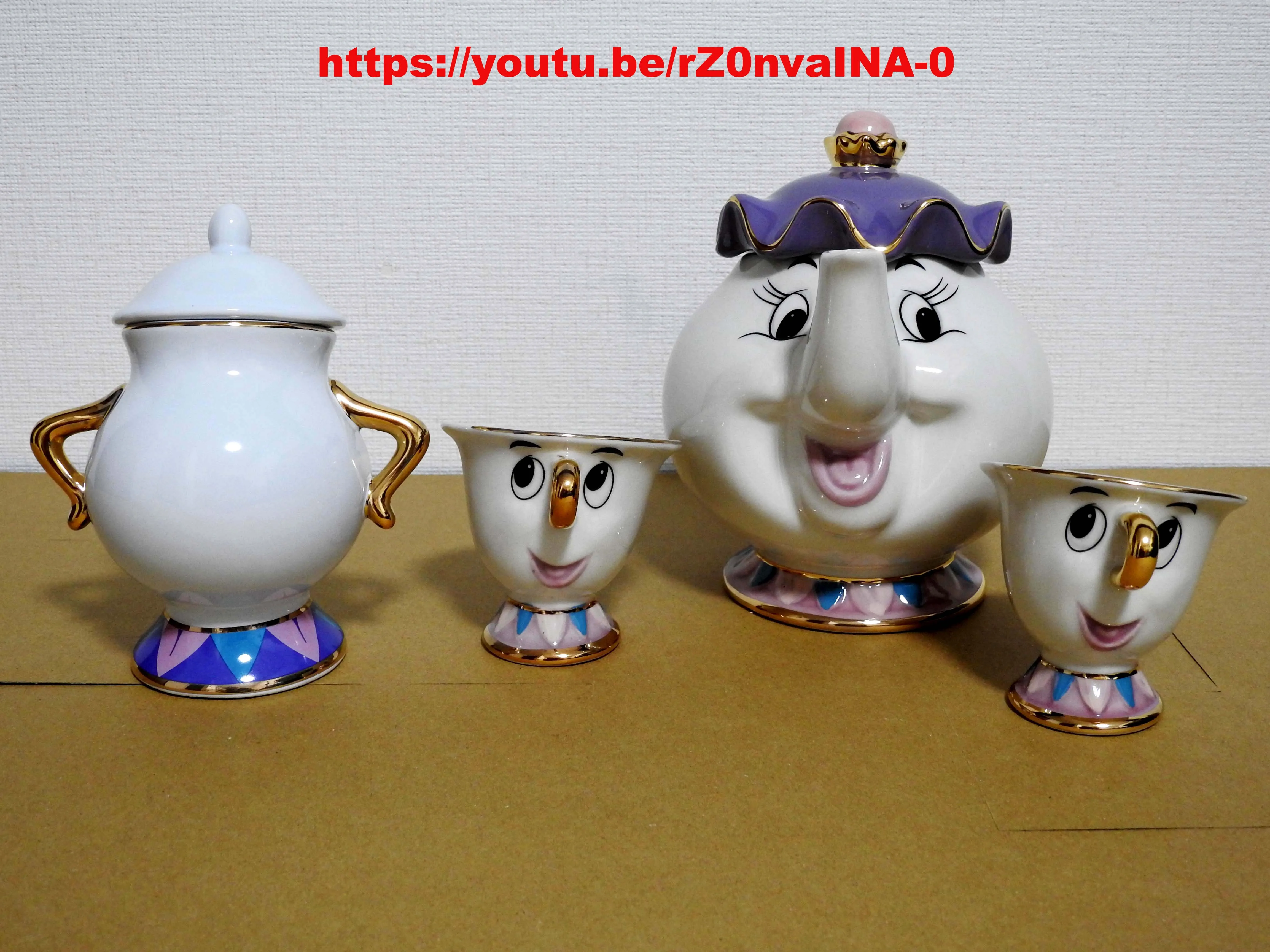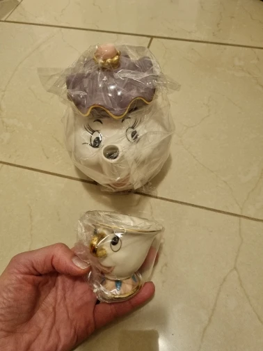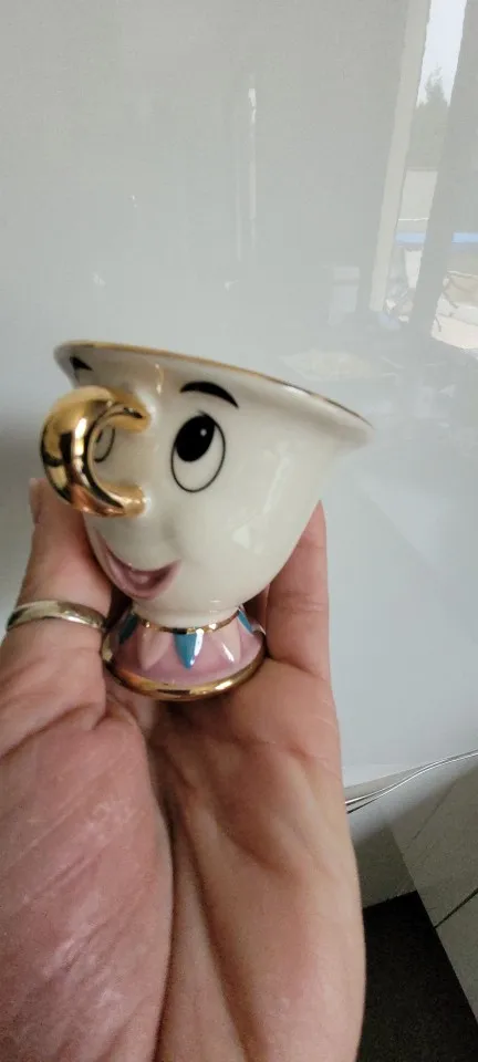 Théière de dessin animé, la belle et la bête, tasse, madame Potts, puce, ensemble de tasses, cadeau en porcelaine, plaqué or 18K, émail peint