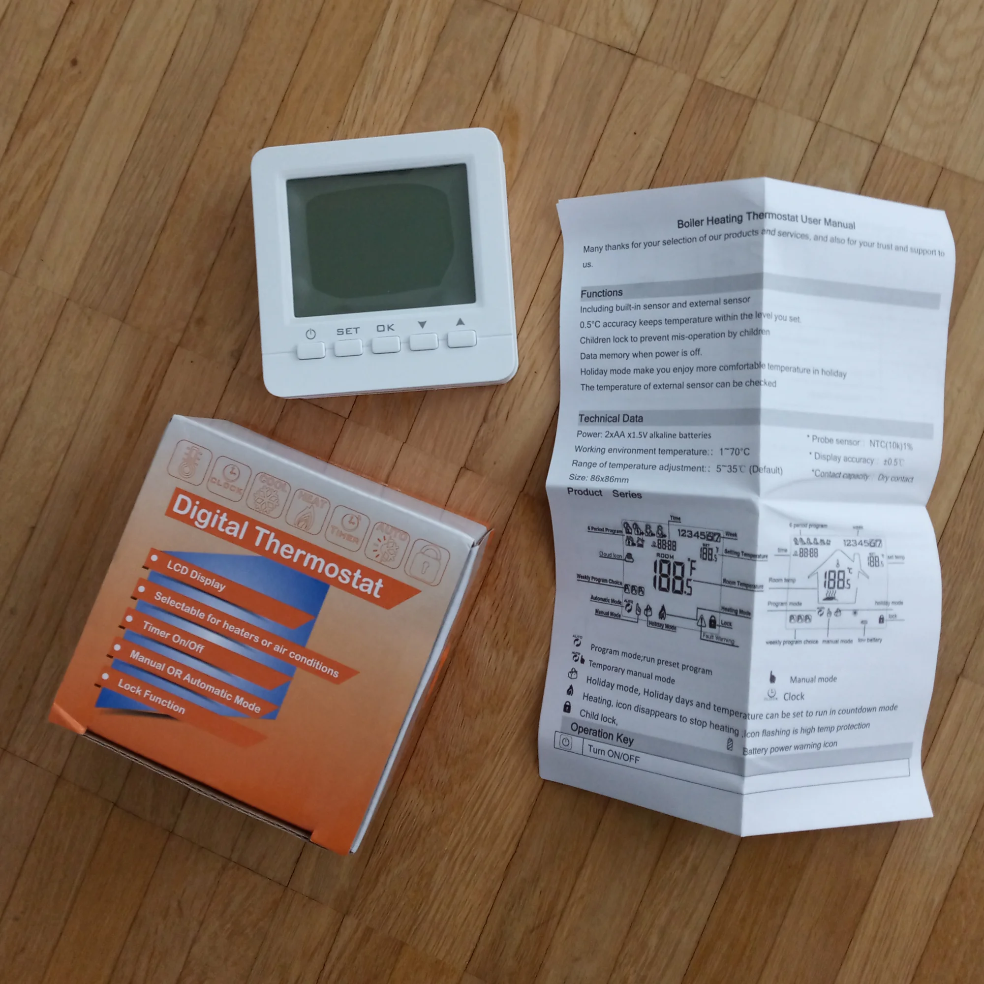 Thermostat numérique de chaudière à gaz avec batterie