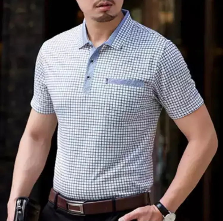 Thoshine marque hommes été polos 95% Viscose Style d'affaires mâle à carreaux point Polo chemise Smart casual Camisa col rabattu