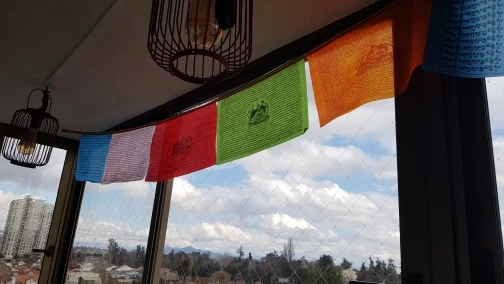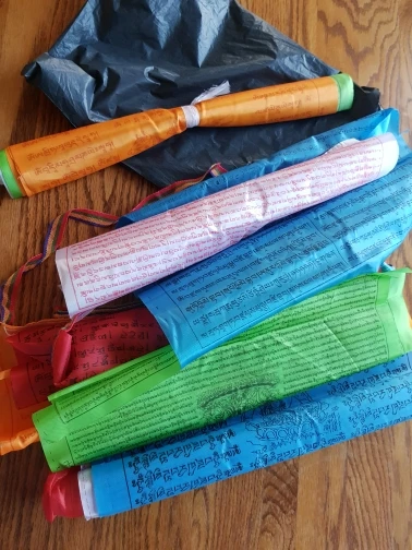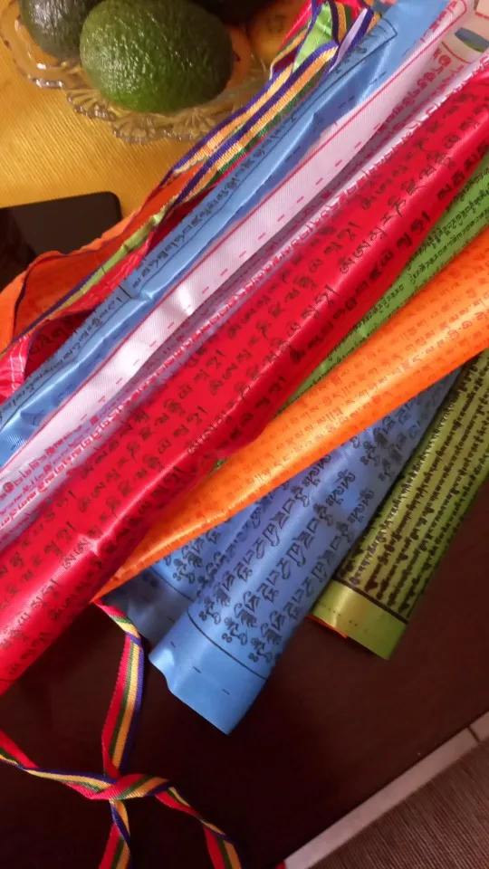 Tibétain bouddhiste prière drapeau soie couleur impression 3.5 mètres 10 pièces/chaîne religieux drapeaux ecritures Temple décor Sutra streamer