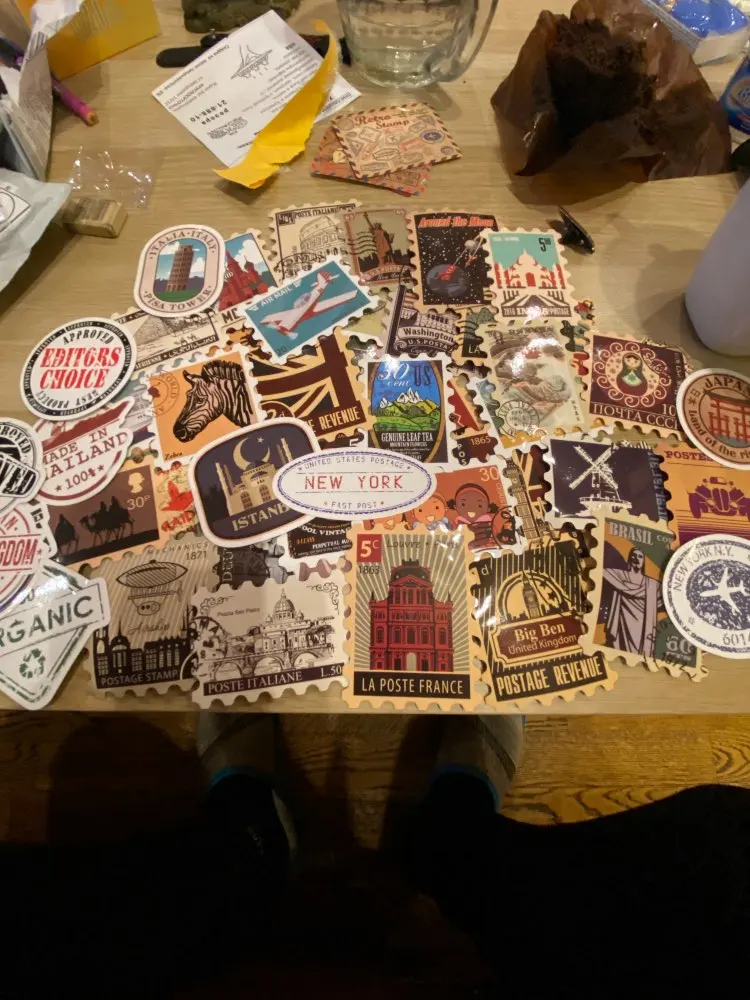 Timbre-poste autocollant rétro 50 pièces, étiquette de voyage bâtiment historique, étiquette postale pour bricolage bagages ordinateur portable étui de voyage guitare réfrigérateur