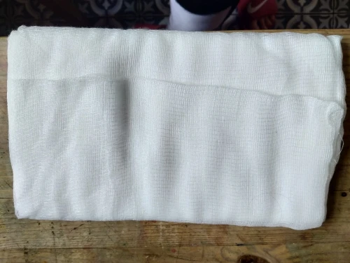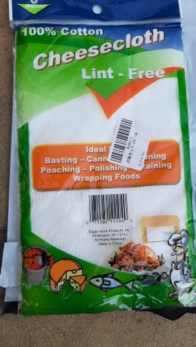 Produit conforme à la description. Fabriqué en Chine pour les USA?. Taille appropriée à la confection de coppa ou de bresaola en alternative aux boyaux. Neutre, 100% coton écru sans odeur ni goût. Suffisamment résistant pour l'égouttage du caillé de lait en vue de la préparation de fromage. Bon produit.