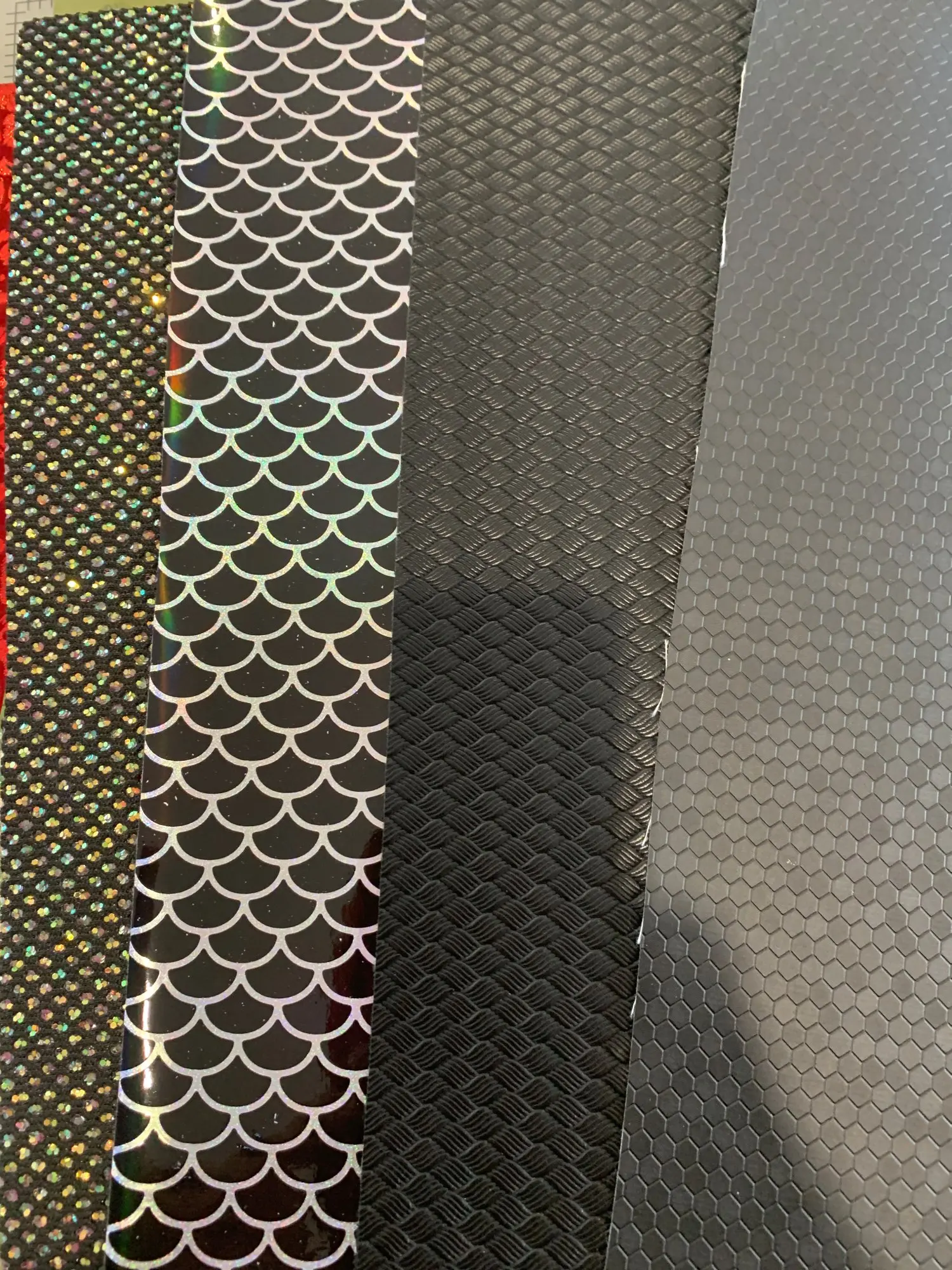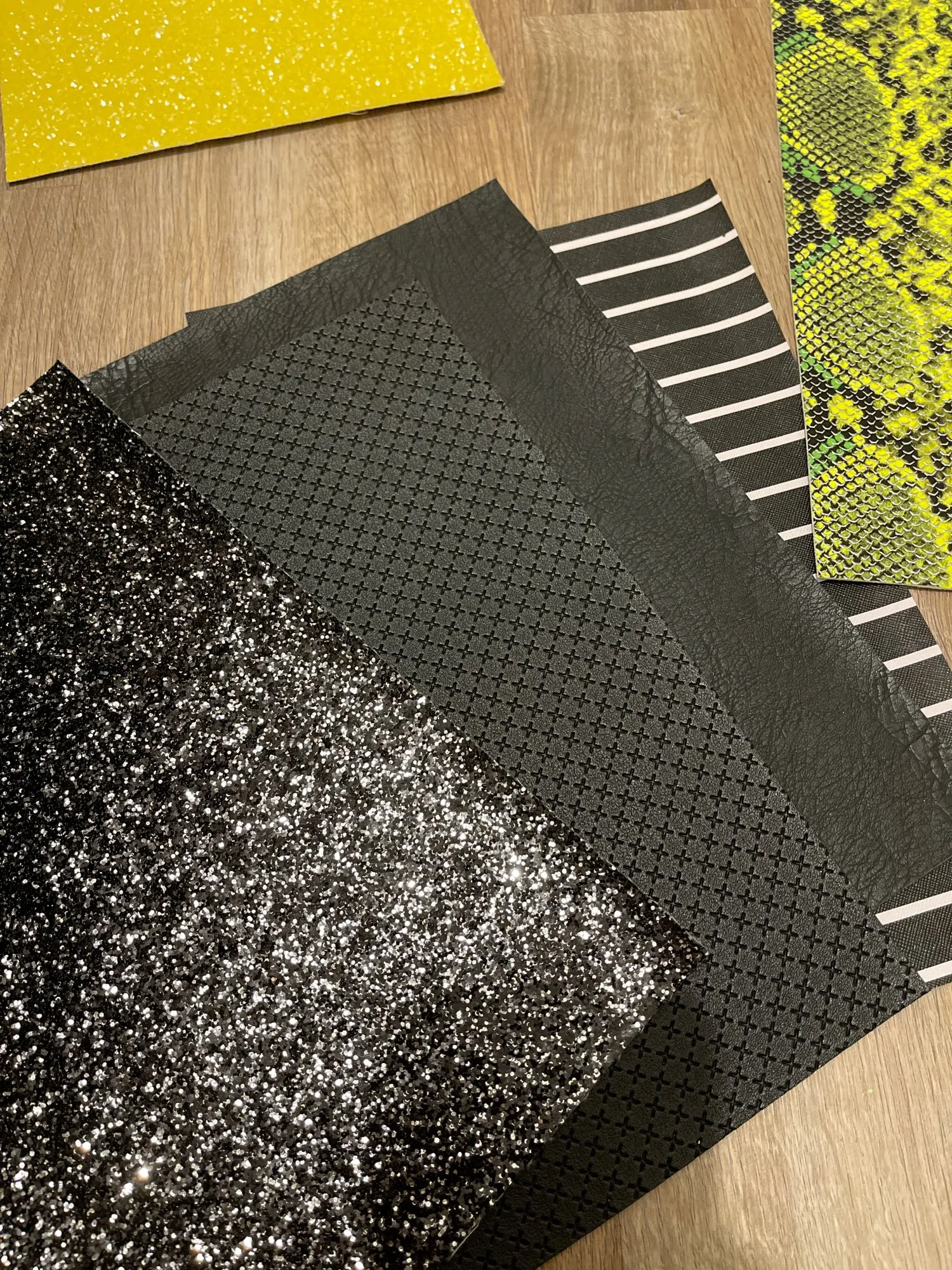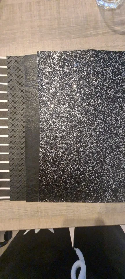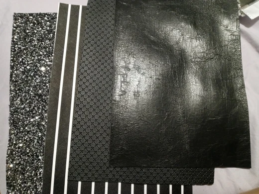 Tissu à paillettes noires, tissage de cuir synthétique à rayures, feuilles de Faux tissu imprimées pour nœud A4 21x29CM scintillant Ming XM002L