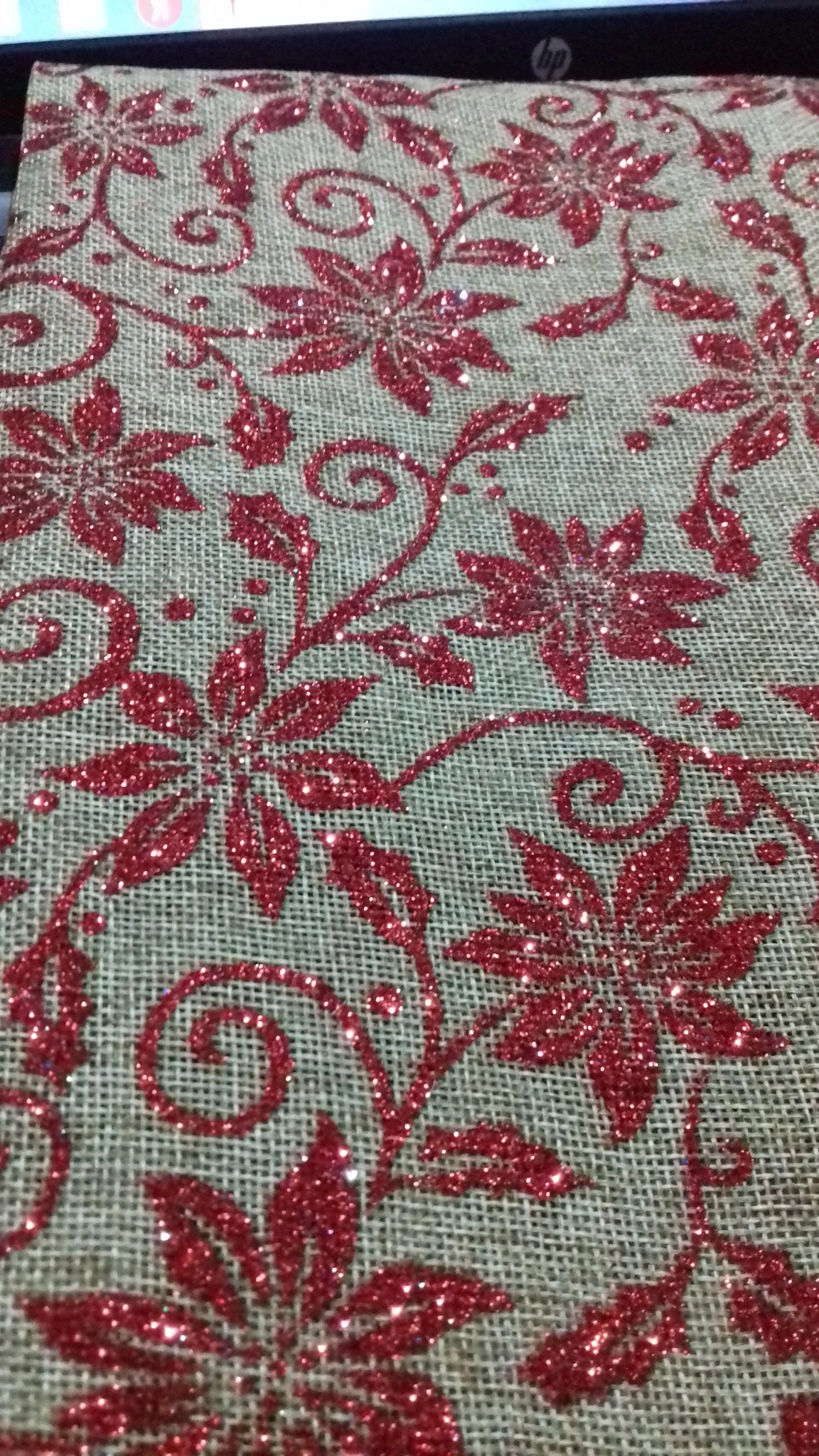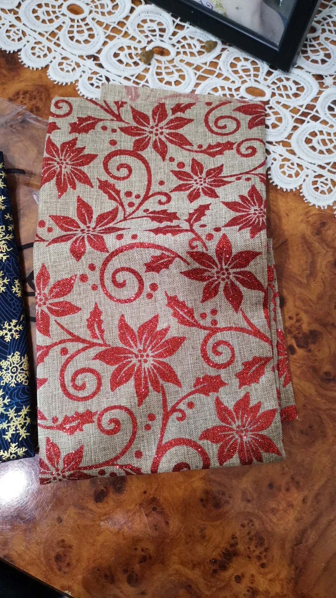 Tissu de Jute rouge pailleté avec flocons de neige, Faux lin pour décoration de noël, TJ0552