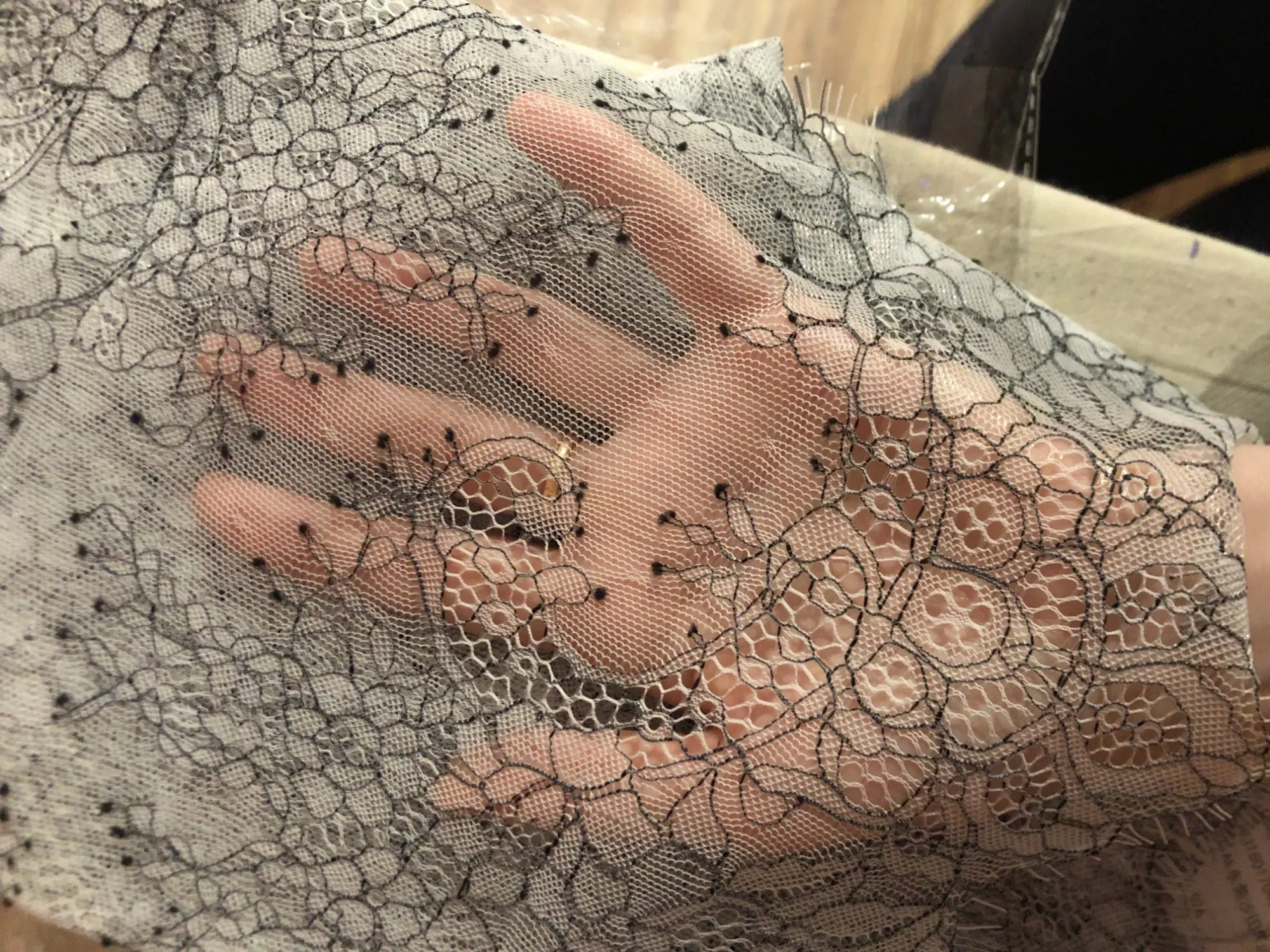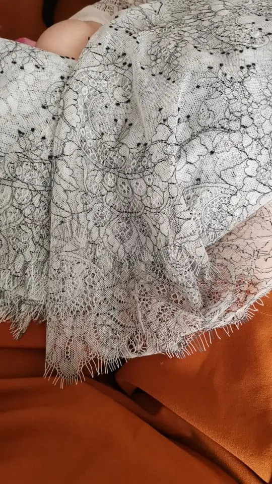 Tissu en dentelle à cils gris clair + noir, 6 mètres, doux, sous-vêtements 100% Nylon, garnitures noires et blanches, 35CM x 300CM