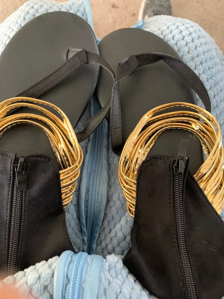 Tongs plates décontractées pour femmes, sandales d'été bon marché, grande taille 43, décoration en métal, fermeture éclair, envelopper la cheville, chaussures de loisirs