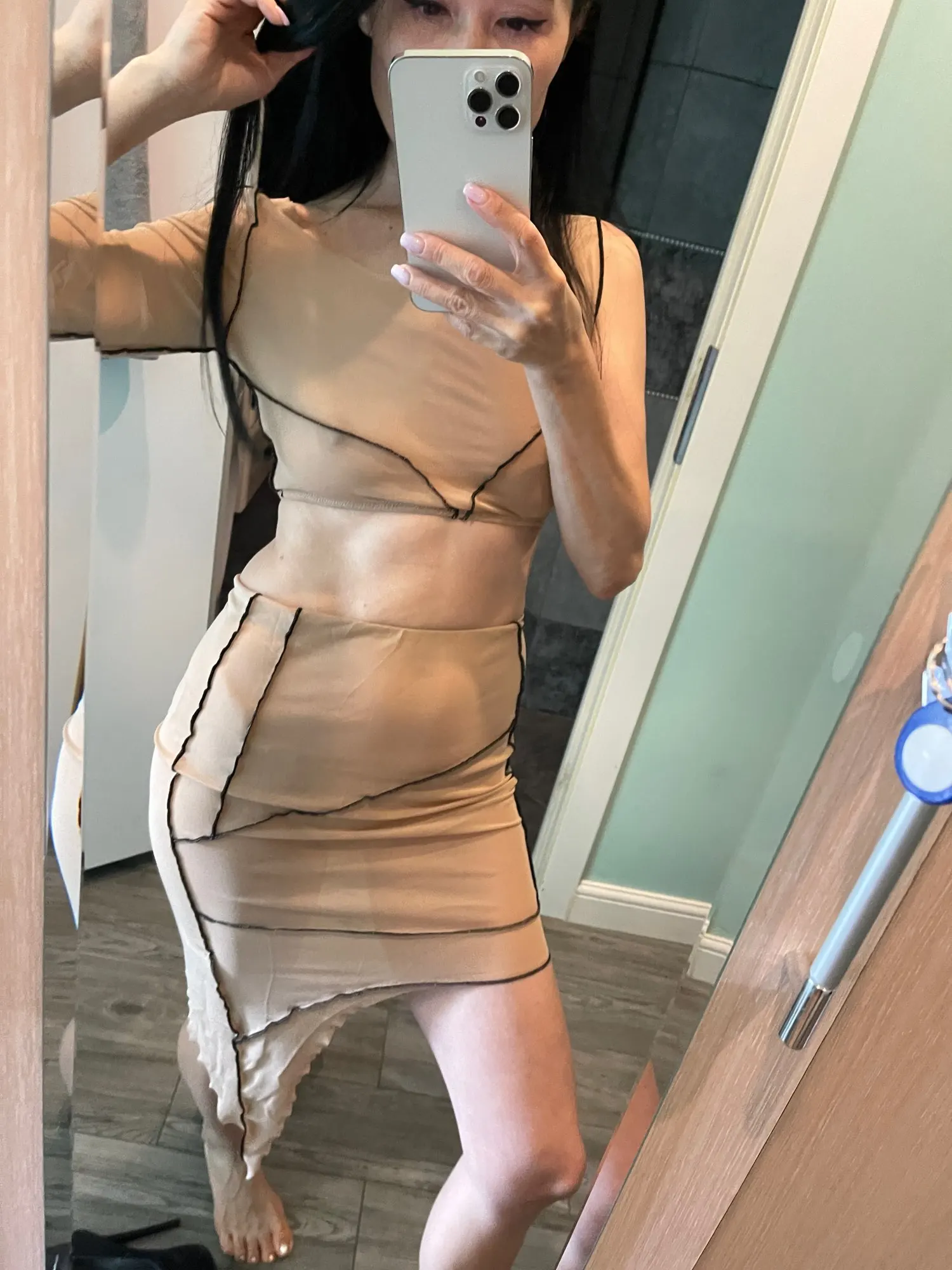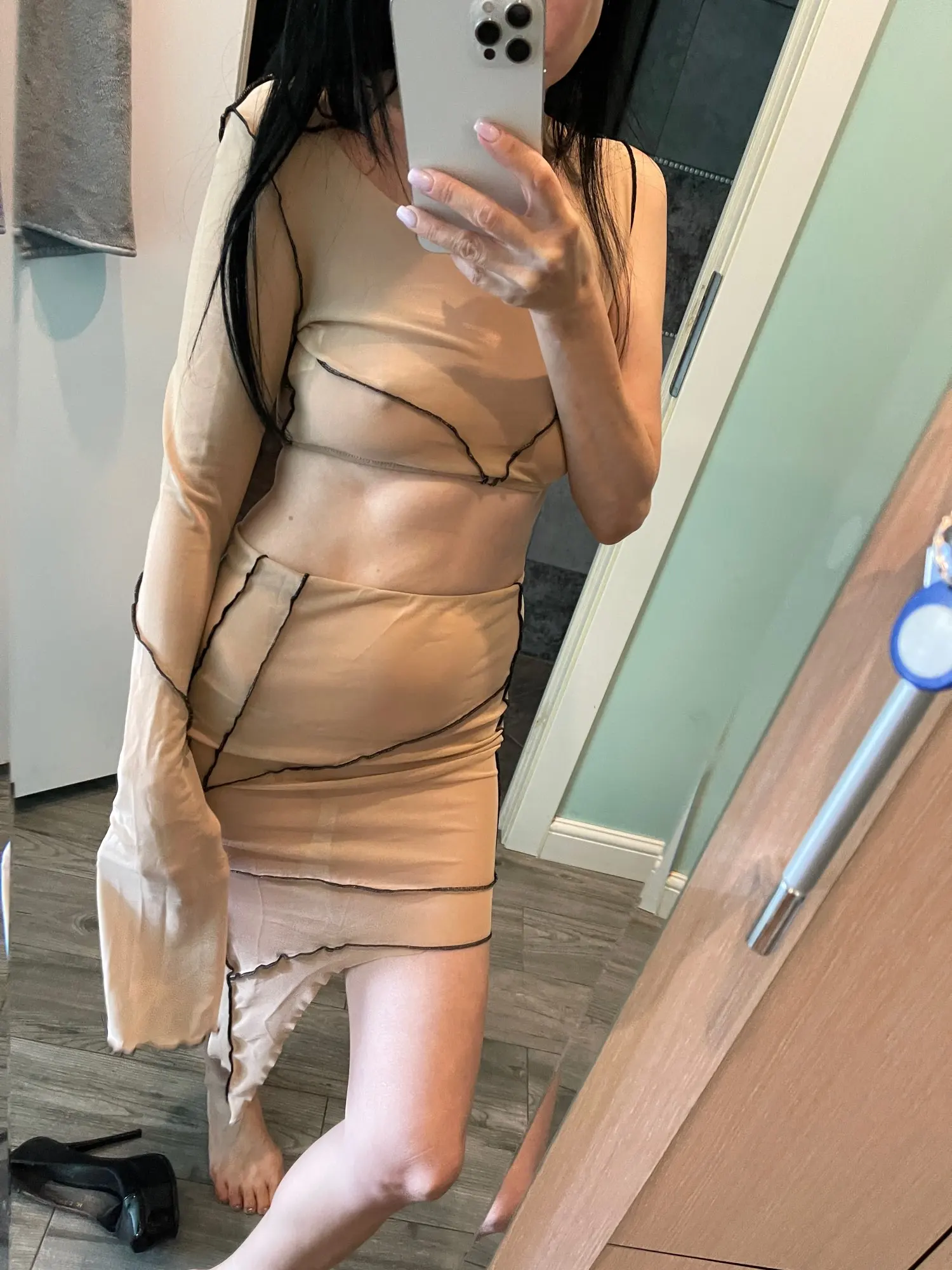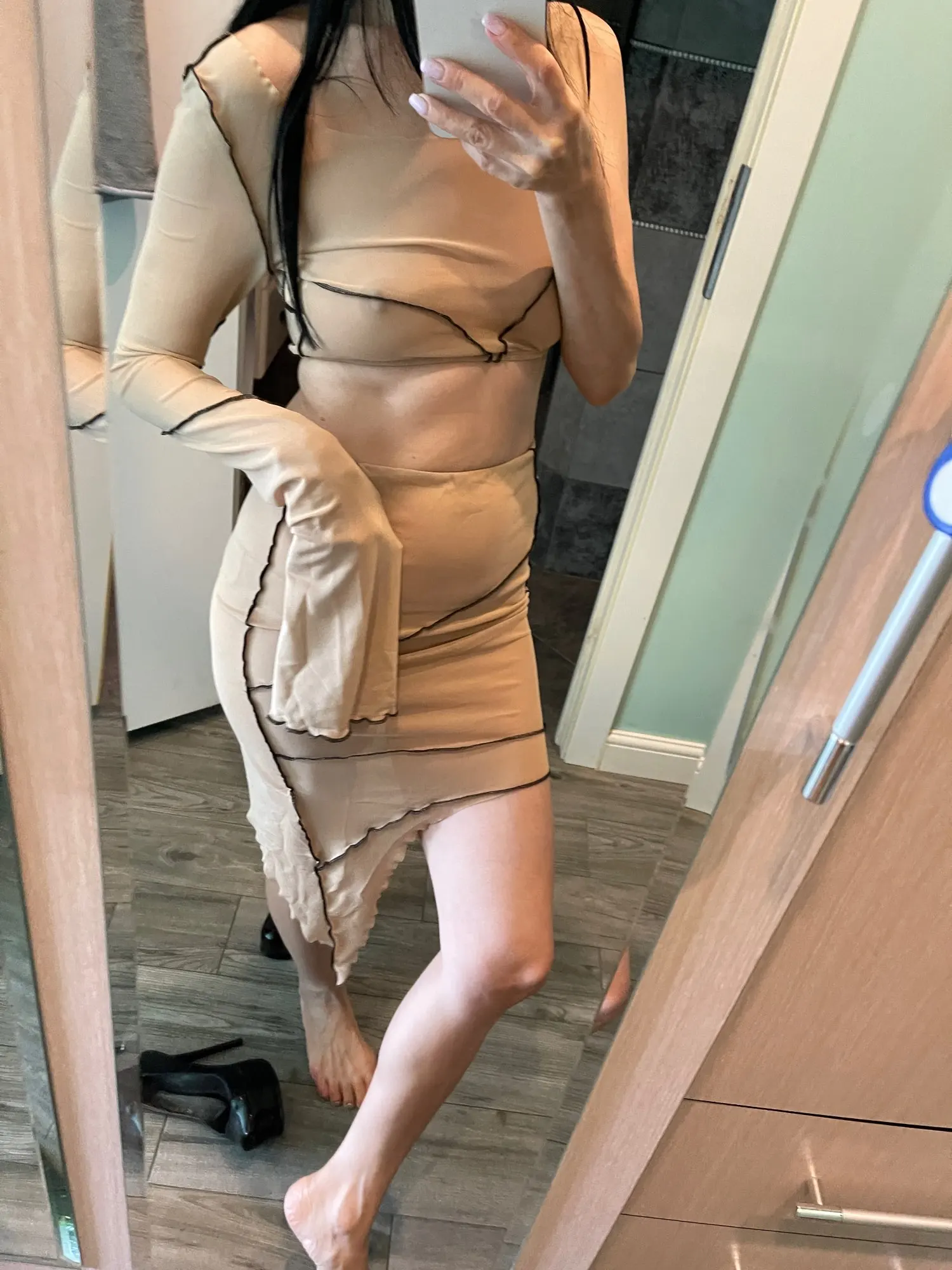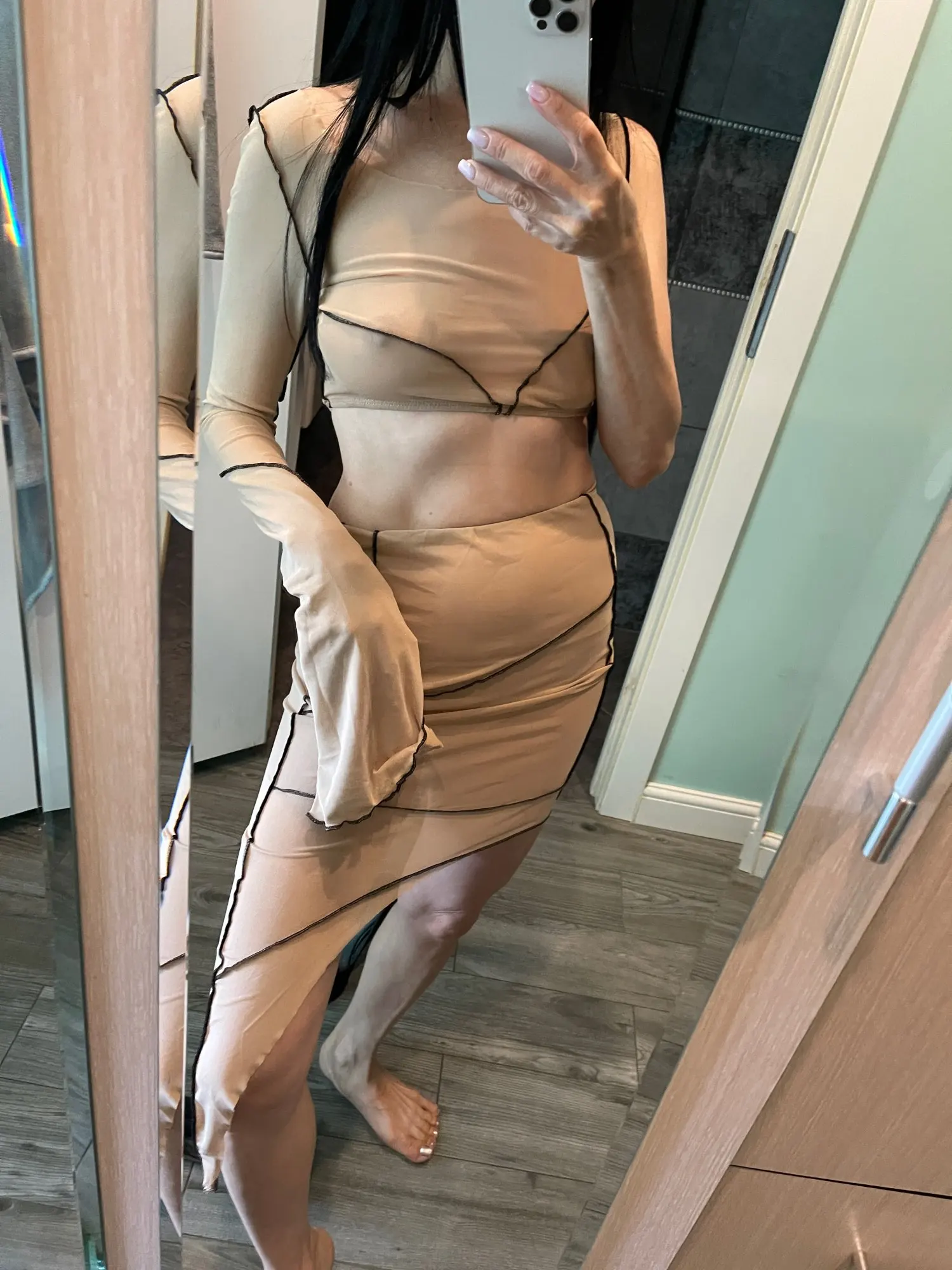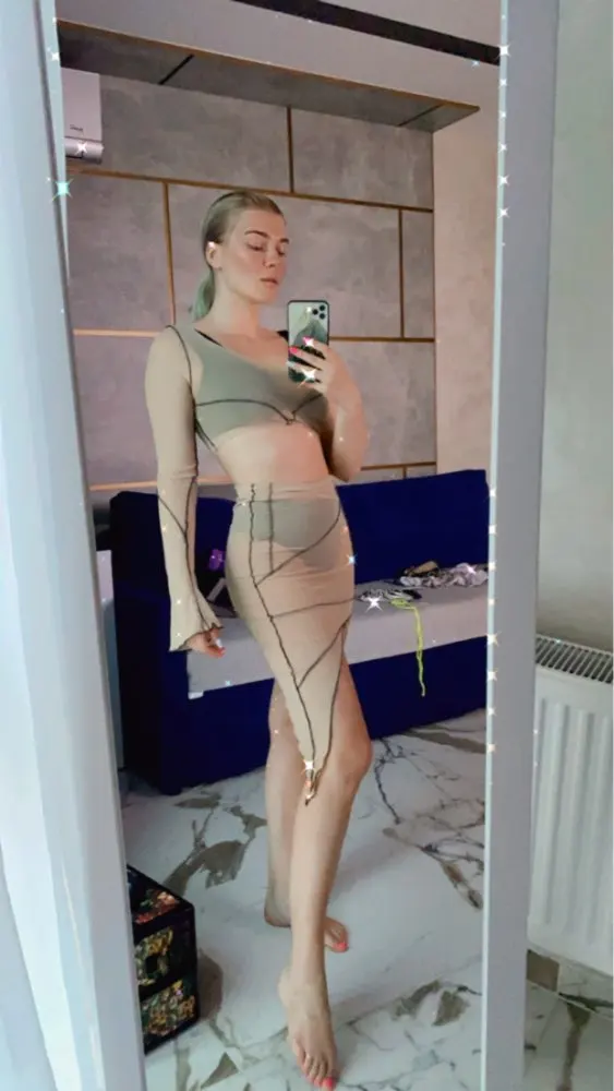 Top cryptographique Sexy en maille transparente et jupe Midi, ensemble deux pièces assorti pour fête en Club, à manches longues, à la mode, automne 2022