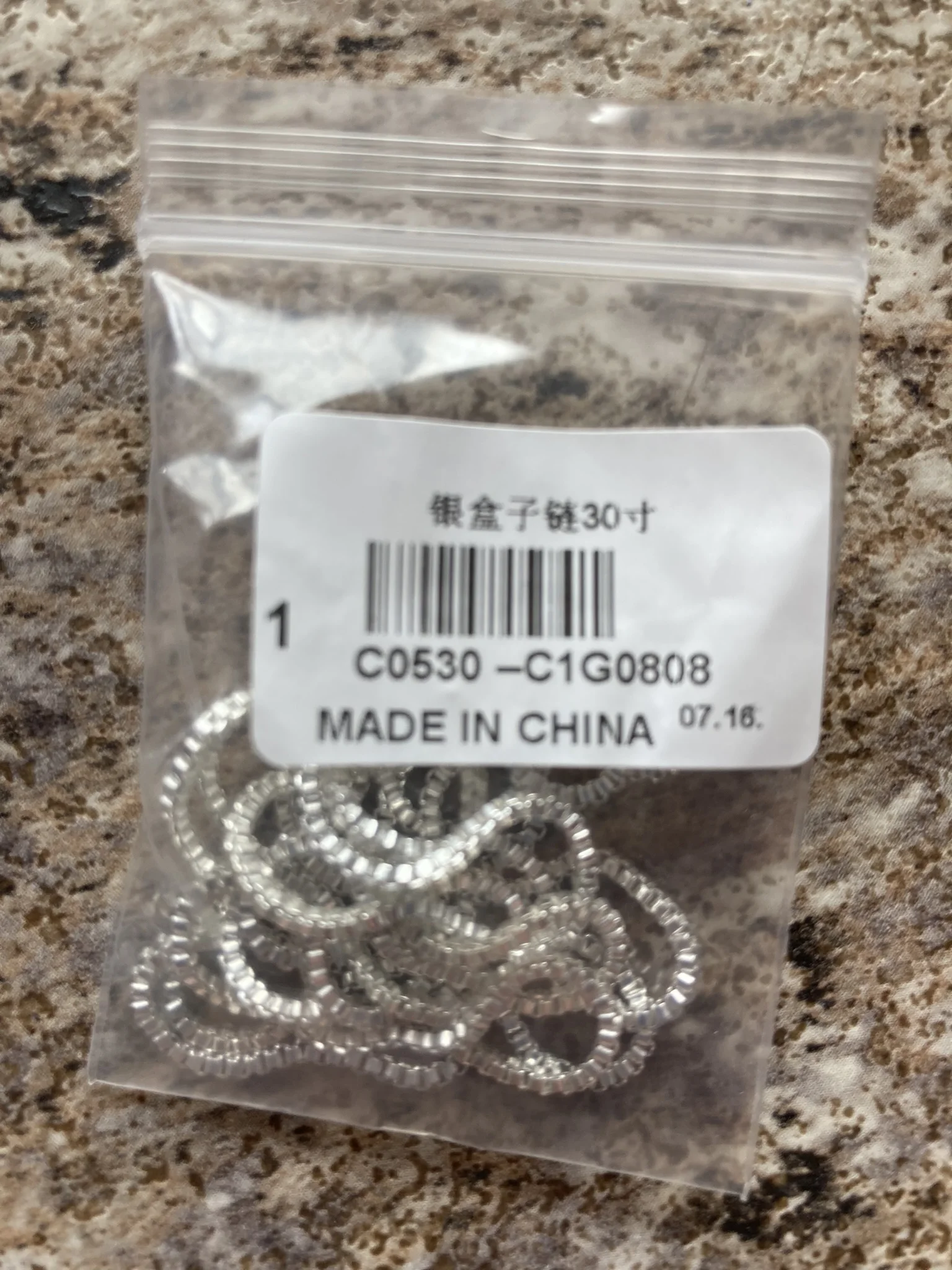 Très belle chaine. 18 inch, 45 cm, c'est juste si le cou est un peu large. reçu avec Aliexpress shipping en 12 jours.