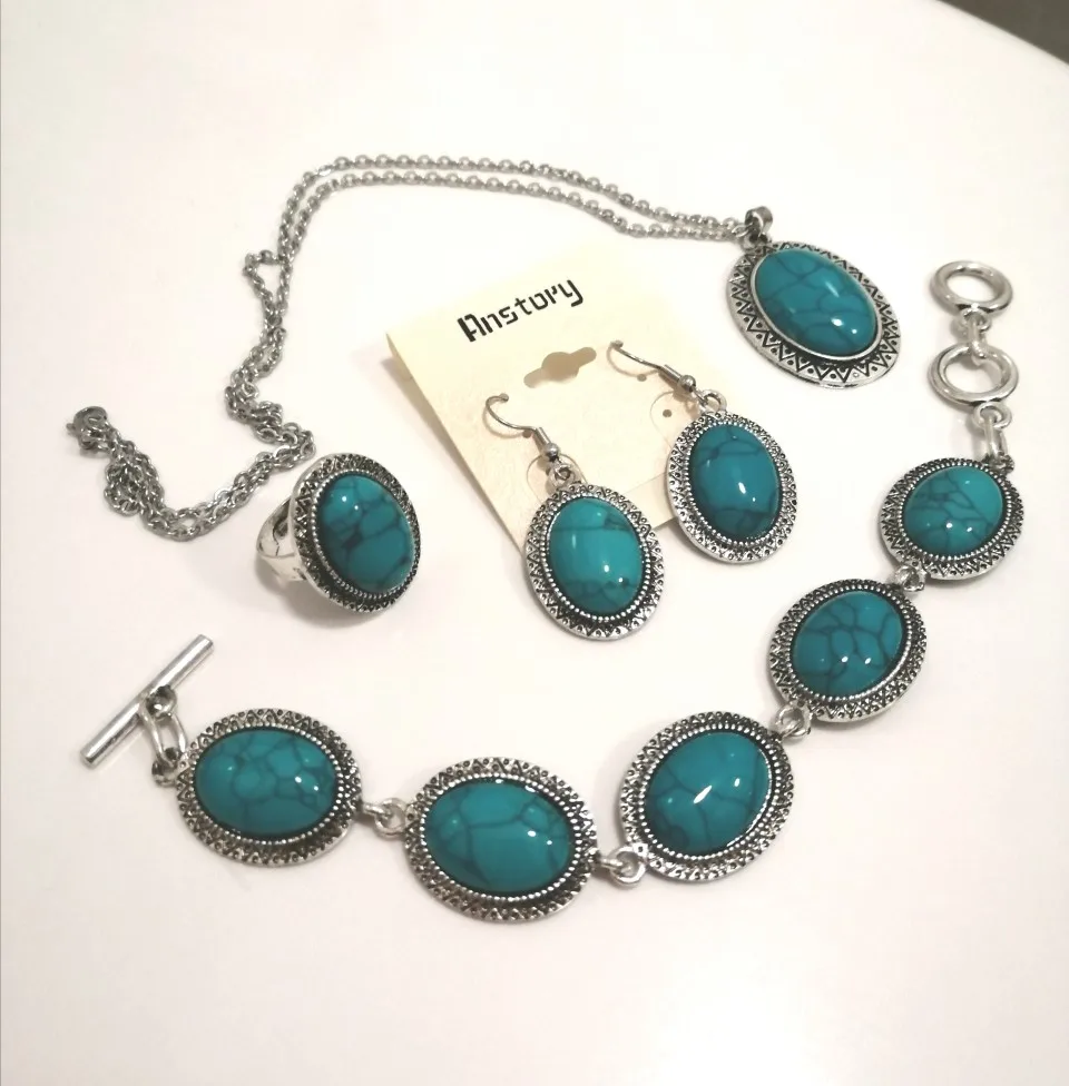 Tournesol Ovale Pierre Parures Collier Bracelet Boucles D'oreilles Anneau Pour Les Femmes Vintage Antique Argent Plaqué Partie Cadeau TS71