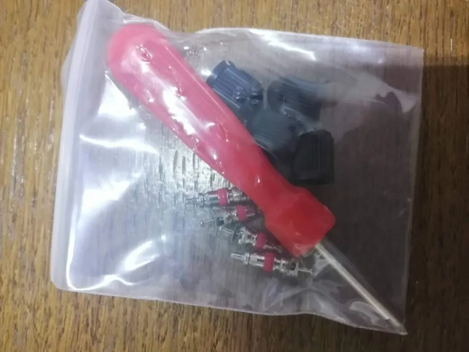 Tournevis de tige de Valve | Kit de Service de Valve 4 noyaux de Valve 4 bouchons de Valve 1 outil de réparation de pneus pour moto de voiture