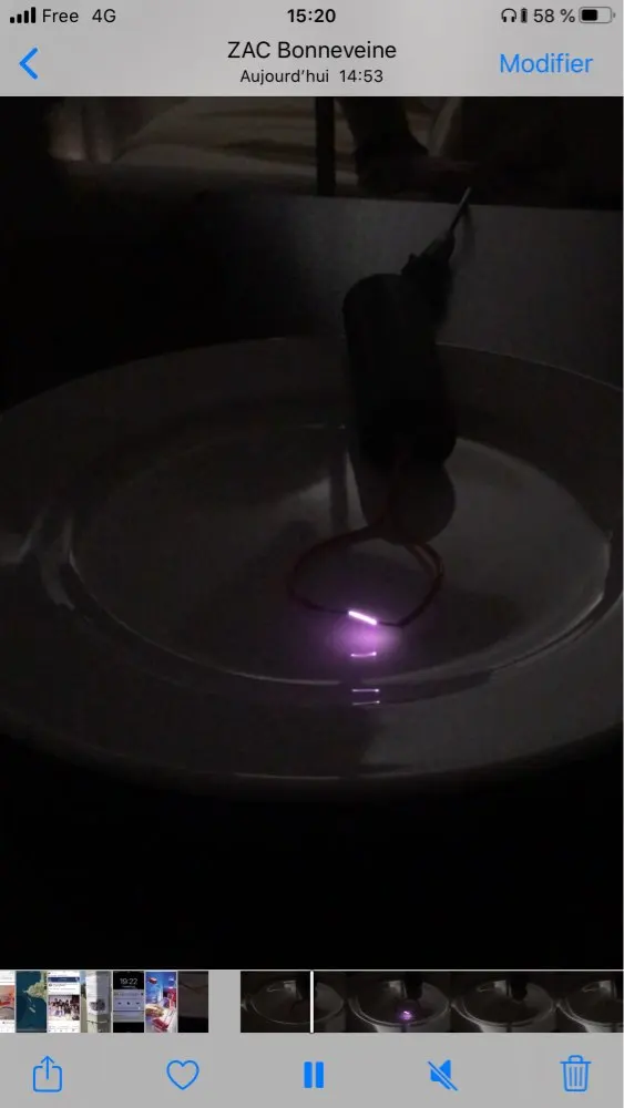 Assez faible a 12v 1,5A mais drole de surprise, écartez beaucoup les electrodes et vous obtiendrez un effet corona (photo 2)