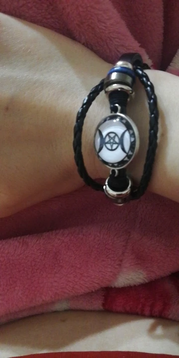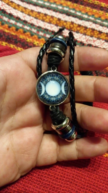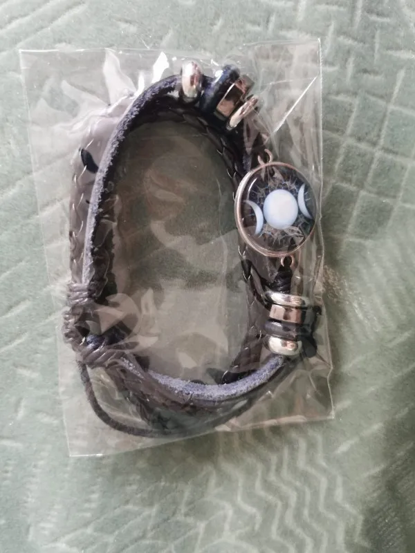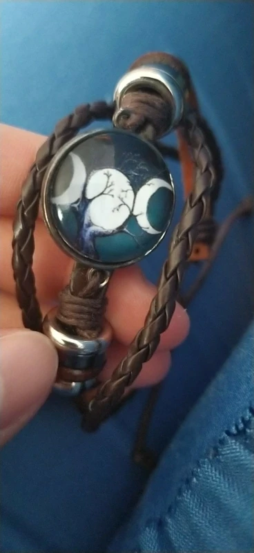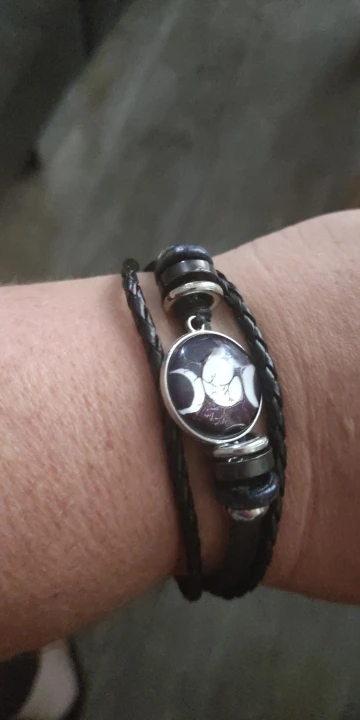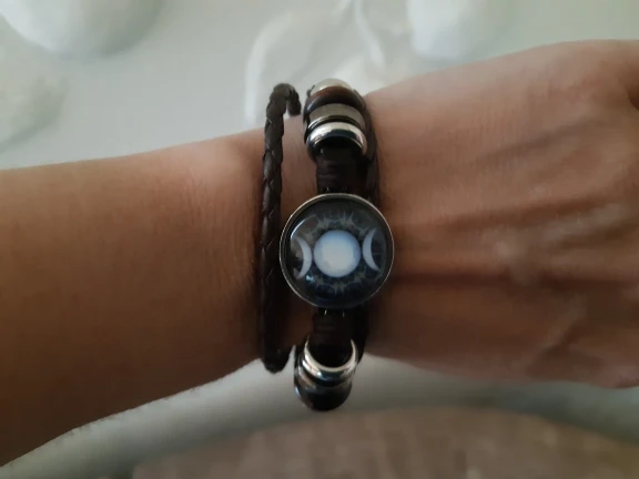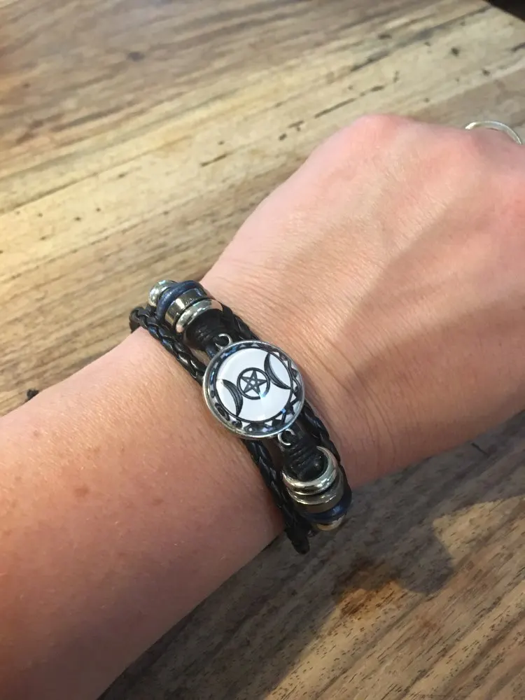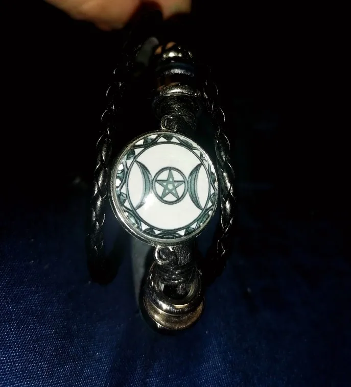 Triple lune déesse Bracelet pentagramme sorcière bijoux 20mm verre dôme Wiccan noir/marron cuir Bracelet breloque Wicca bijoux