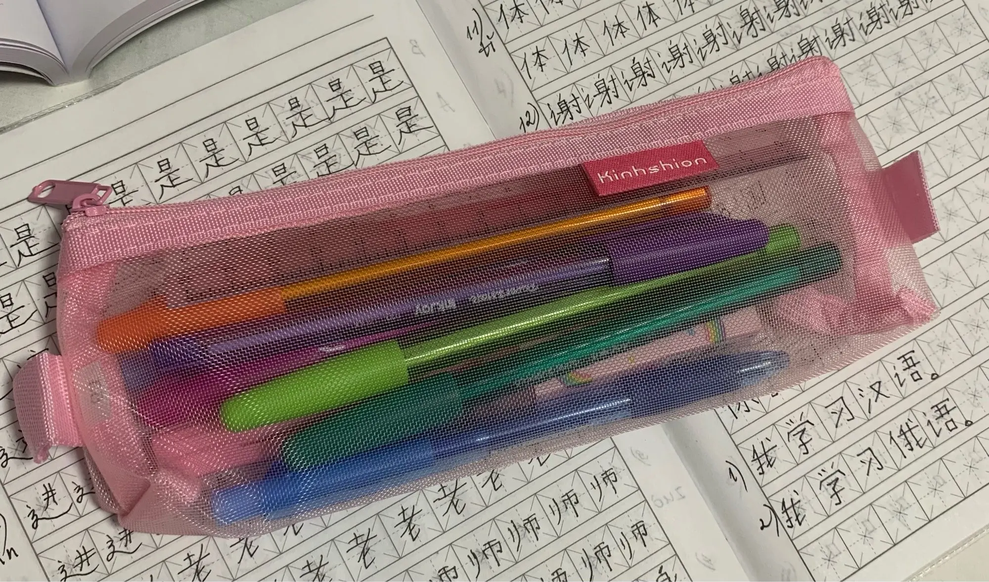 Trousse à crayons transparente à grille, sac à crayons à fermeture éclair, paquet de rangement pour grilles, papeterie coréenne fournitures scolaires 1 pièces